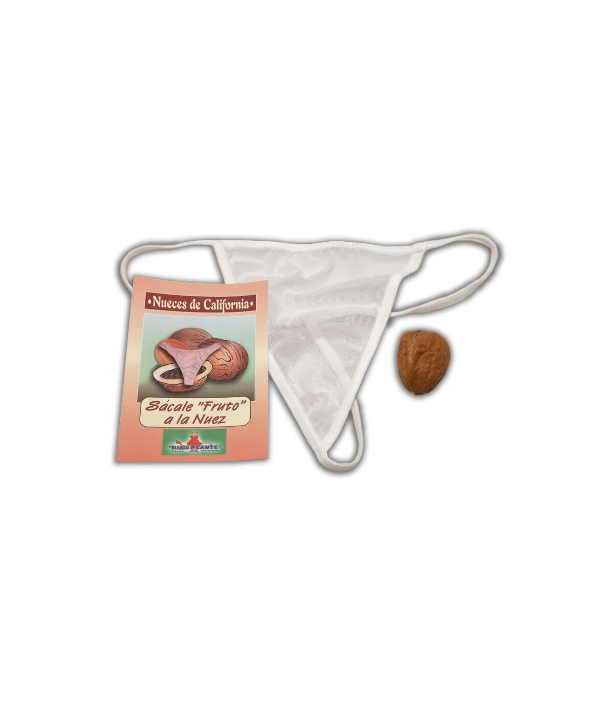 Contiene una nuez con un tanga rojo dentro de ella para regalárselo a tu amigo o amiga en plan de ligue o broma. Son muy divertidos. Las nueces están muy bien conseguidas, parecen reales.