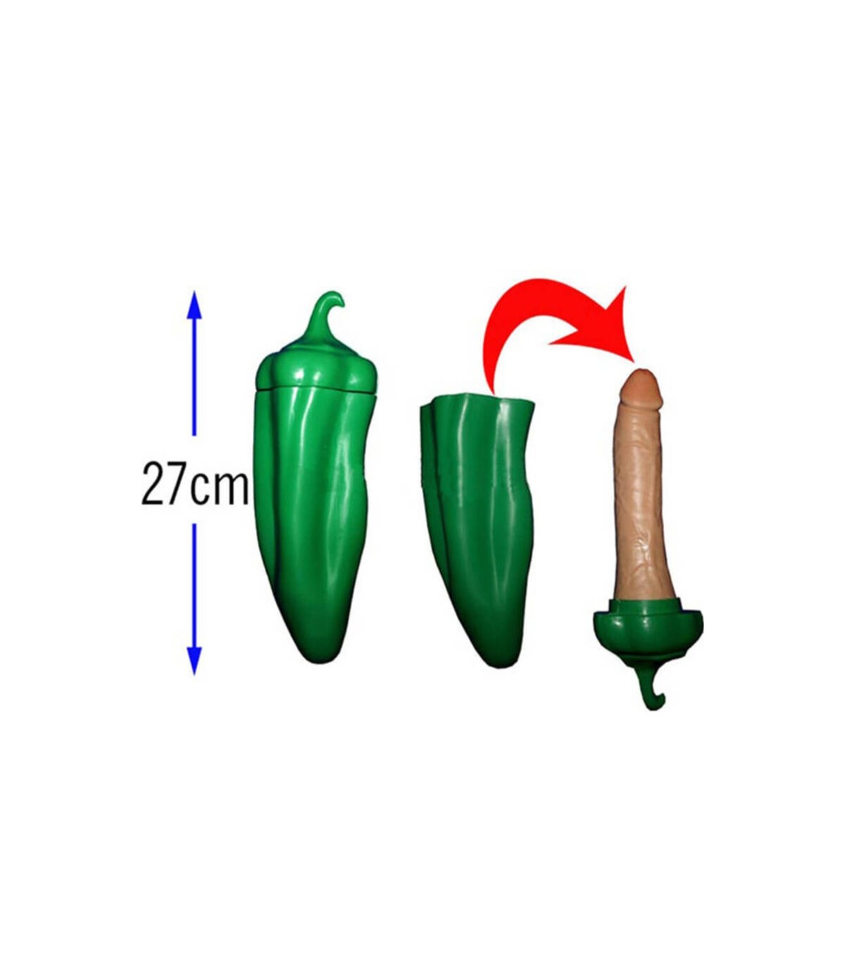 Es un PIMIENTO VERDE CON SORPRESA DE PENE para despedidas de soltero, cumpleaños, fiestas o cualquier evento. La risa estará asegurada, llenarás de felicidad tus despedidas de soltería!