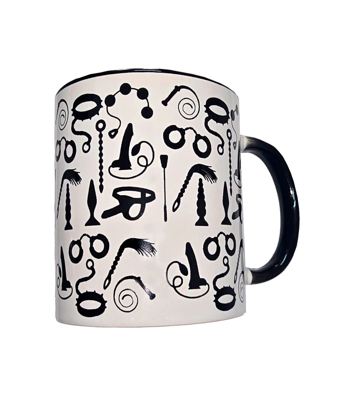 Fabricada en cerámica de alta calidad, esta taza presenta un acabado blanco brillante en el exterior, decorado con divertidos dibujos eróticos inspirados en el mundo del bondage. Su asa e interior en color negro intenso le aportan un toque elegante y contrastante, ideal para quienes disfrutan de los detalles con personalidad.