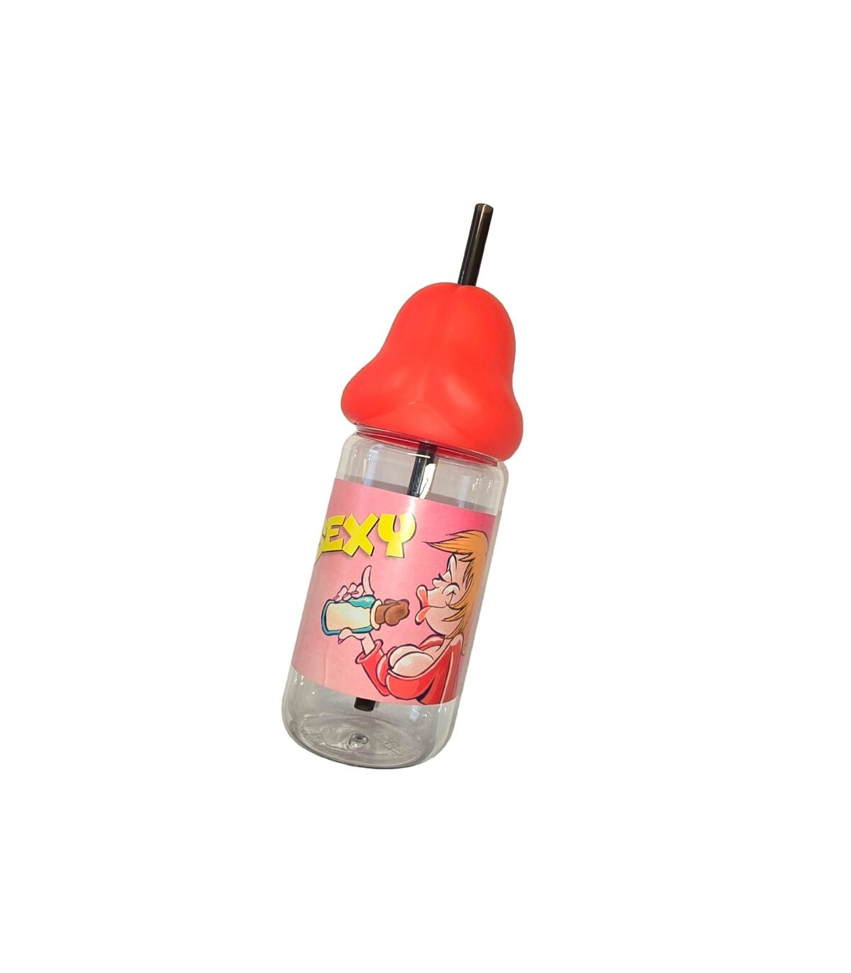 Este accesorio es perfecto para usarse en juegos de fiesta, como parte de la decoración de la mesa de bebidas, o simplemente como un regalo que sorprenderá y divertirá a todos. ¡Haz que tu evento sea inolvidable con este biberón con la punta de la botella en forma de pene rojo y prepárate para una noche llena de risas y diversión!