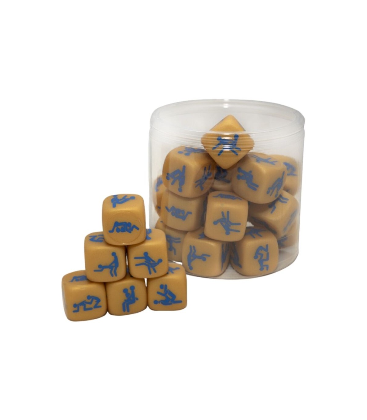 Fabricado con materiales de alta calidad, su acabado dorado le da un toque sofisticado y atractivo, perfecto para destacar como un regalo o accesorio en eventos especiales. Cada cara del dado muestra una posición sexual distinta, brindando inspiración y dinamismo para explorar y disfrutar nuevas experiencias.