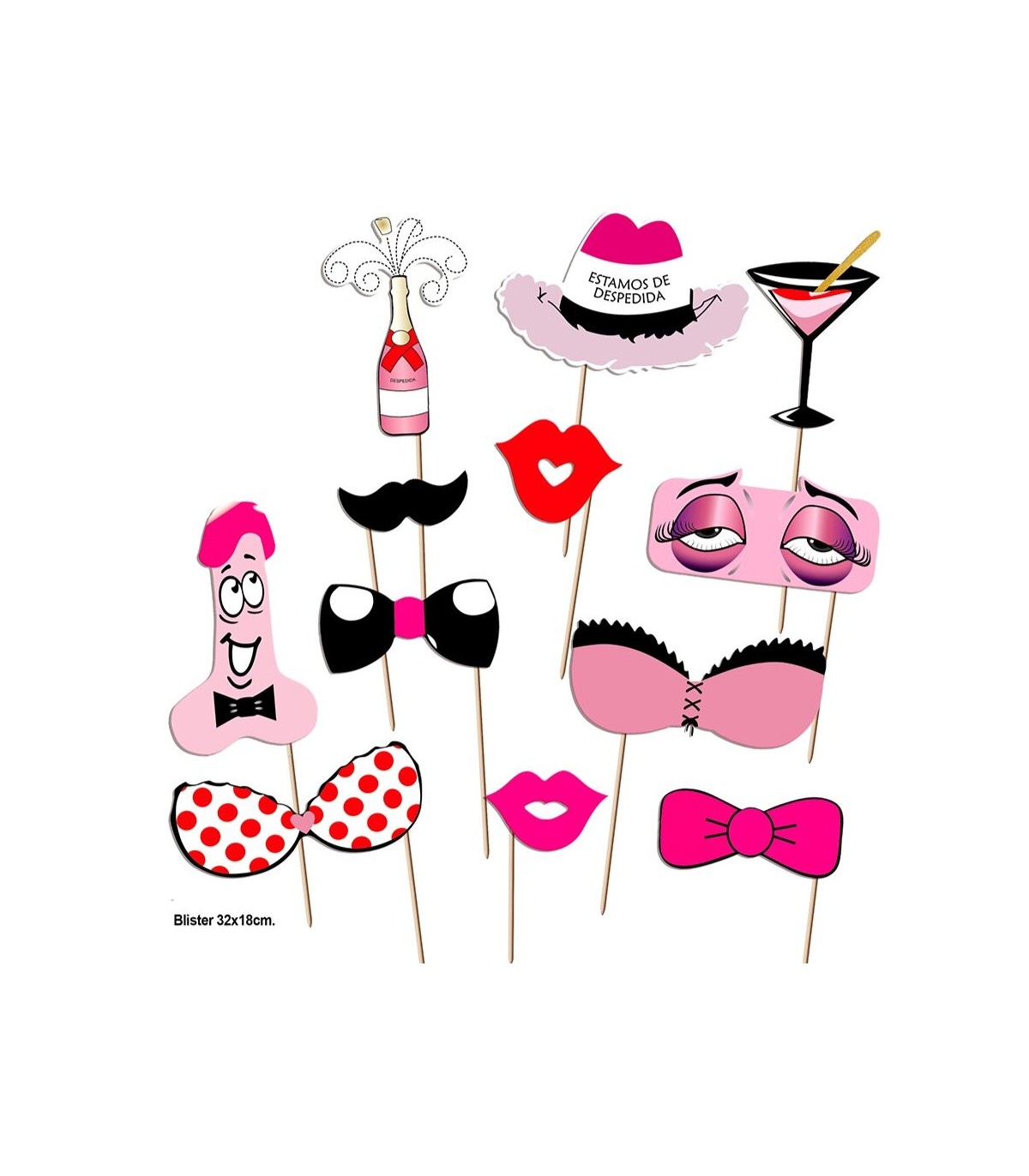 El Photocall de 12 unidades Modelo 1 es un conjunto de accesorios divertidos, provocadores y originales, diseñados para añadir un toque de humor y picardía a cualquier sesión de fotos. Con una variedad de formas y mensajes pícaros, sirven para llamar la atención, romper el hielo entre los invitados o simplemente inmortalizar los momentos más alocados de una forma traviesa y sin palabras.
