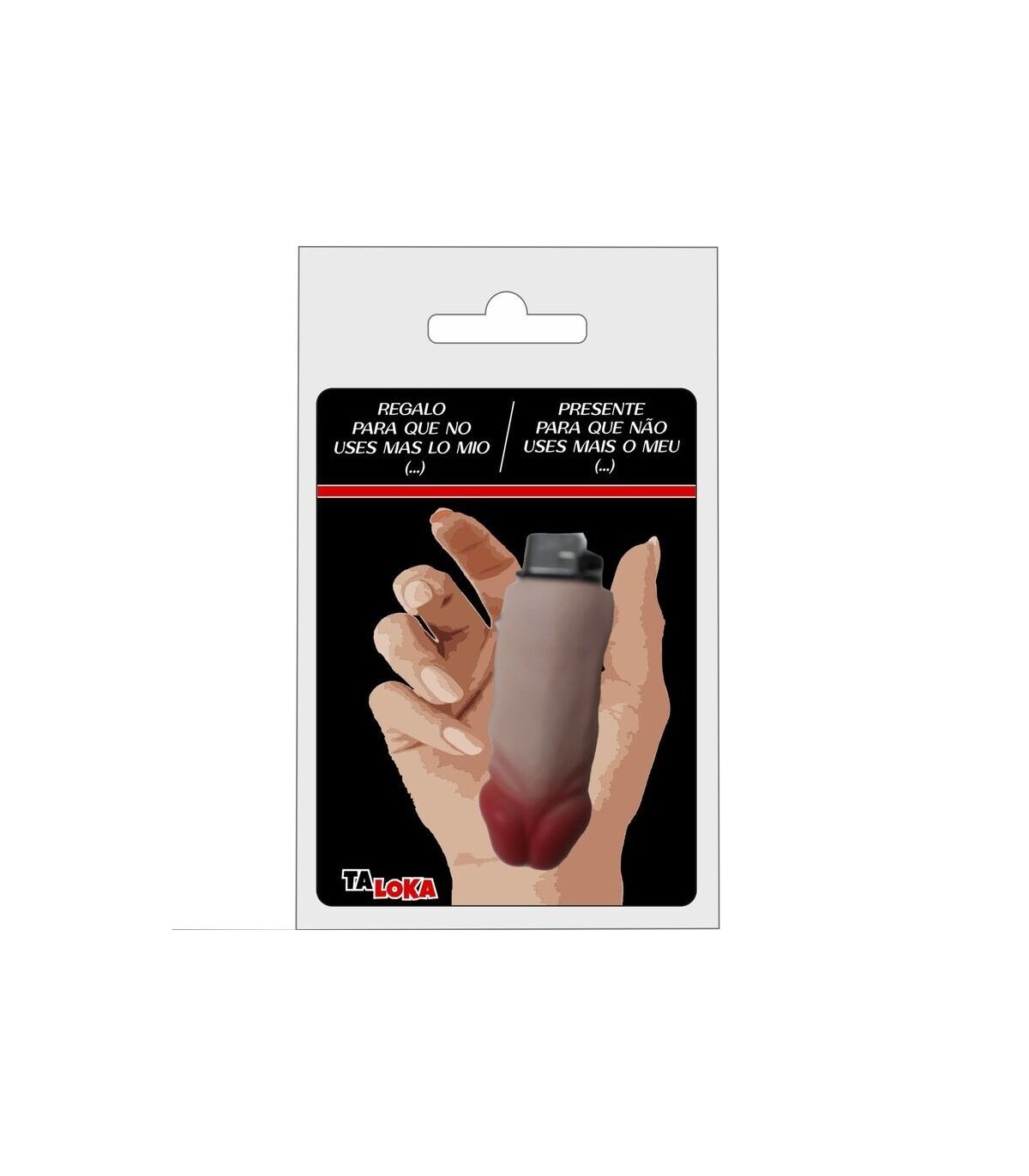 Blister con un FANTASTICO MECHERO EN FORMA DE PENE COLOR CARNE RECARGABLE 100 % CON FRASES DIVERTIDAS