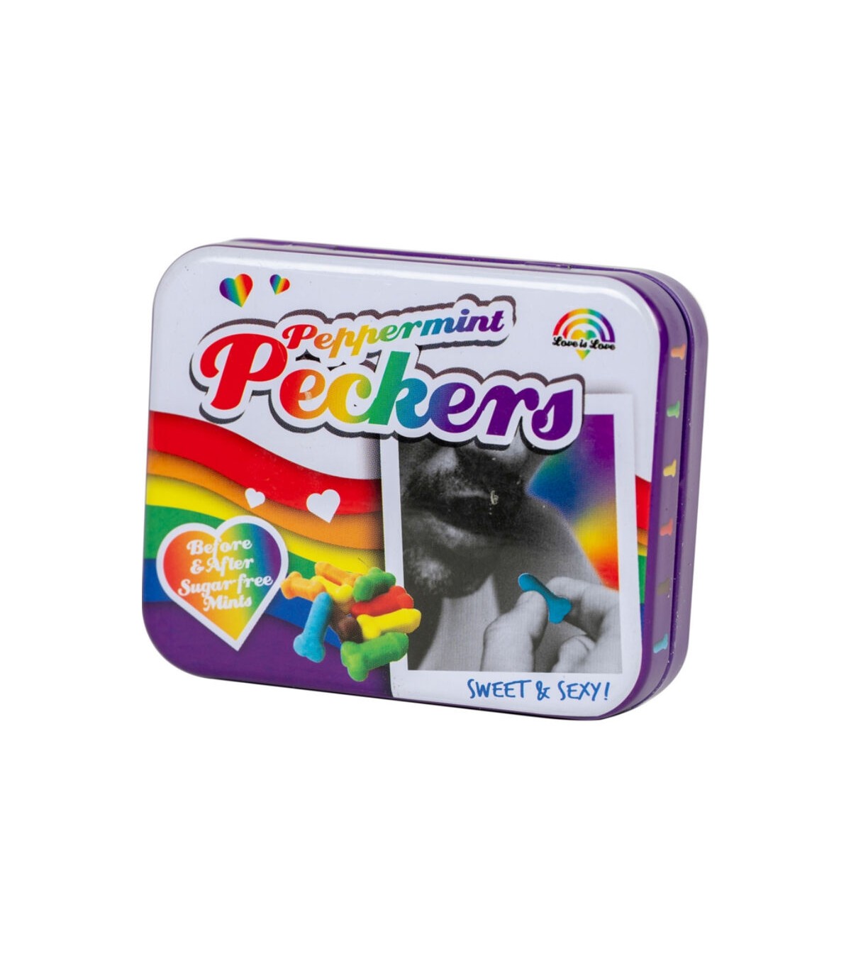 Satisfacción, ¡y además un aliento fresco! Contiene 30 g de mentas multicolores con forma de pene, sin azúcar, en lata con relieve de alta calidad.