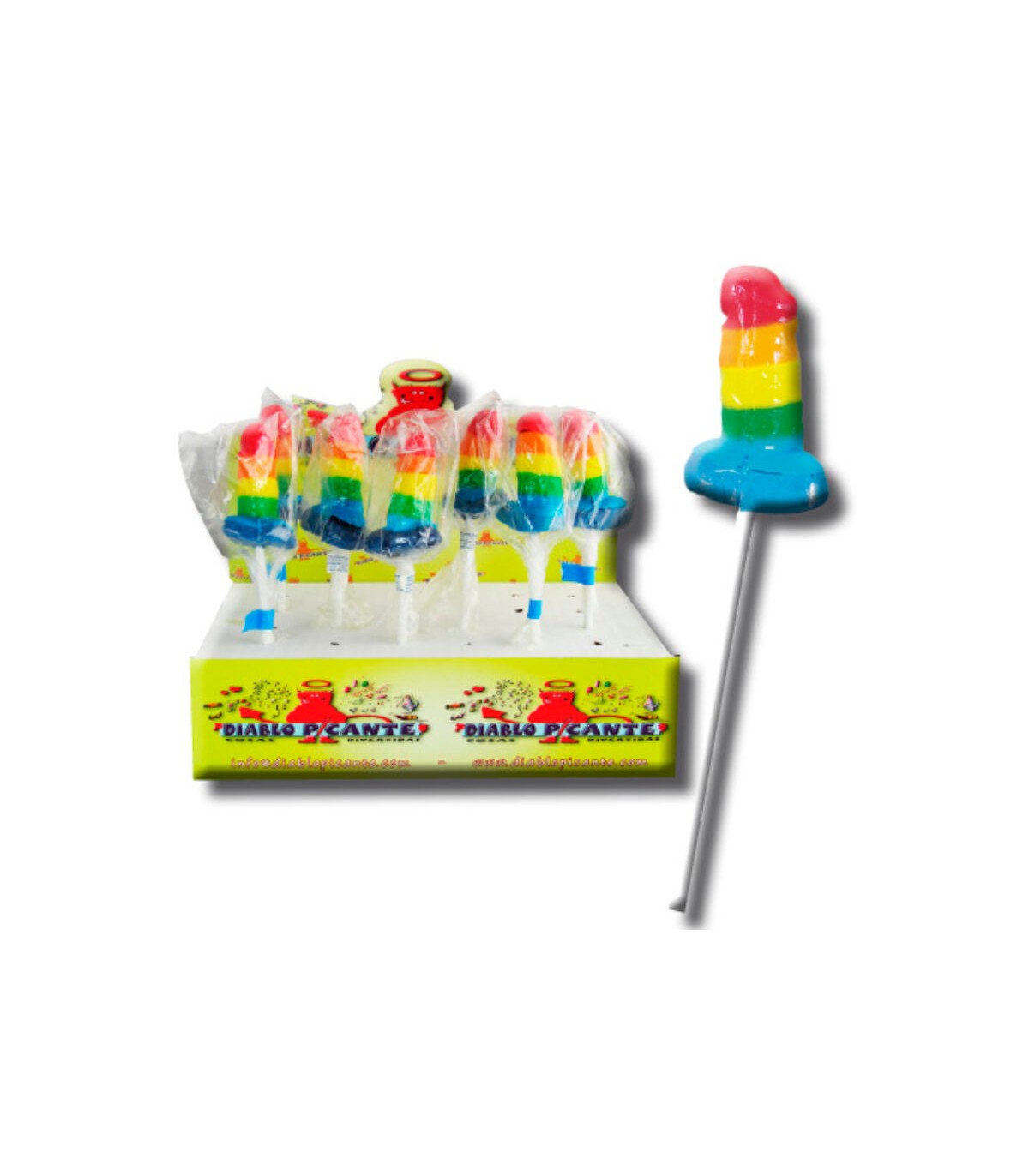 PIRULETA DE GOMINOLA CON FORMA PITO SABOR FRUTAS VARIADAS CON LA BANDERA DEL ORGULLO, LGBT.