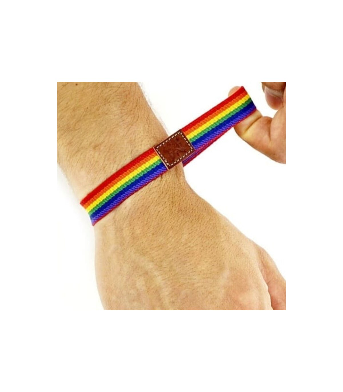 Pulsera de goma ajustable lujo con los colores emblemáticos de la bandera del orgullo , muy ponible y llamativa por los colores que son muy fuerte y destacan mucho en la muñeca.