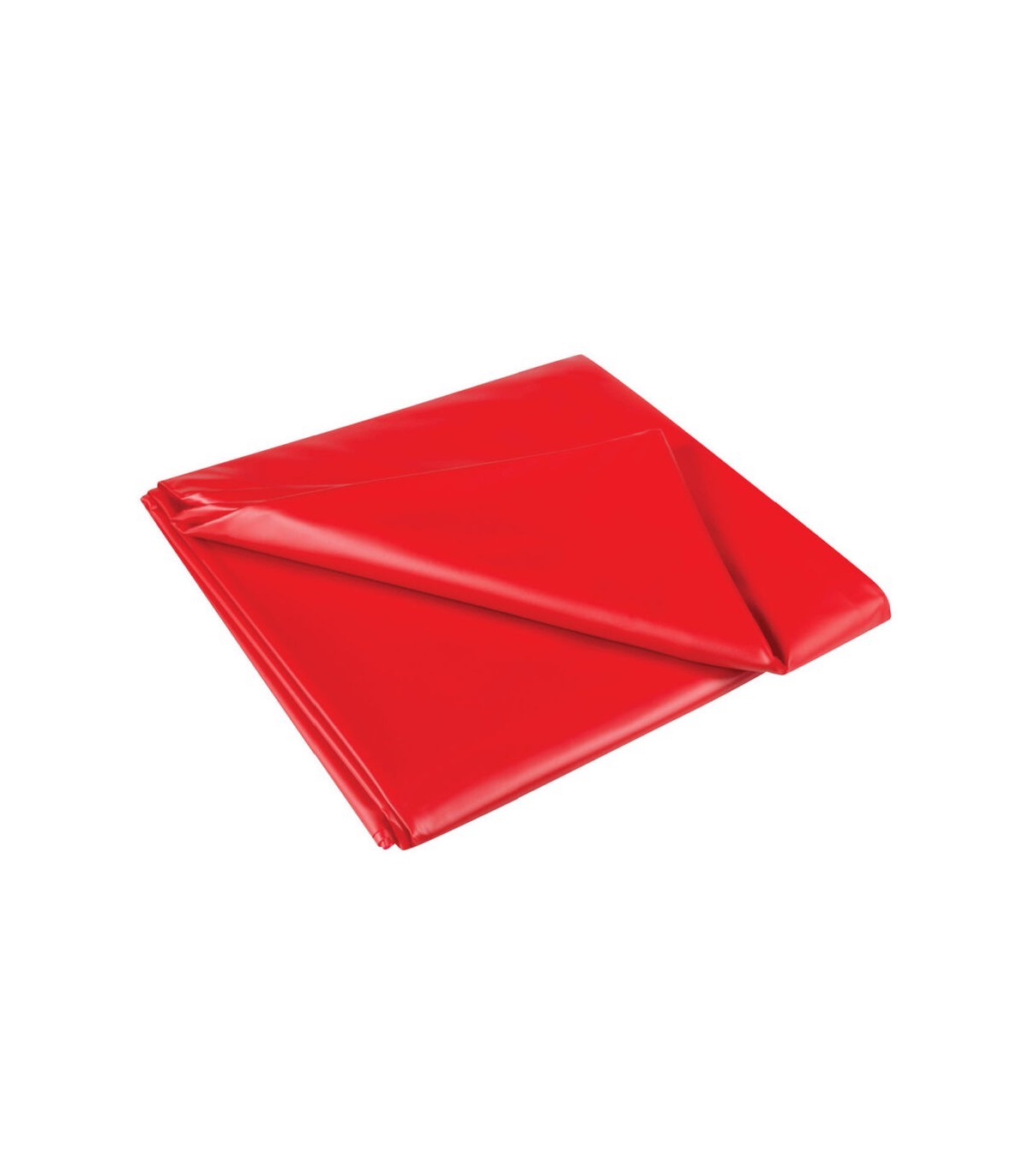 Es una fantástica sábana roja de material plástico lavable. Convertirá tu cama en un maravilloso campo de juegos sexuales.