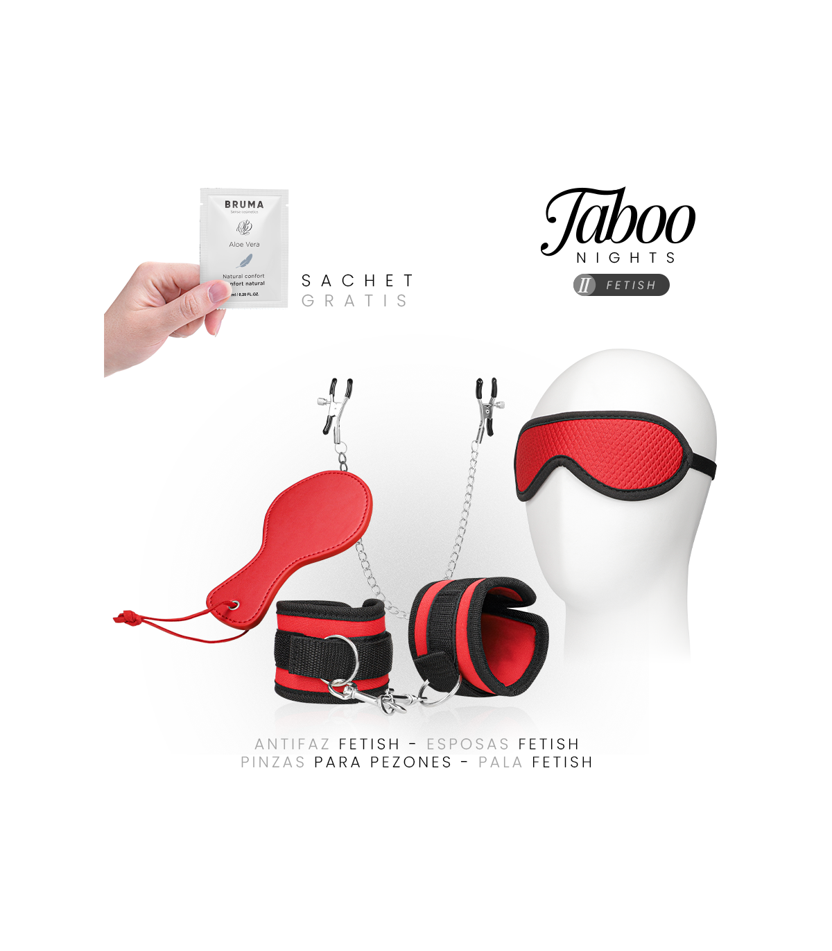 TABOO NIGHTS – 2: FETISH reúne los elementos esenciales para disfrutar de juegos de dominación suave, exploración sensorial y placer compartido en un solo pack.