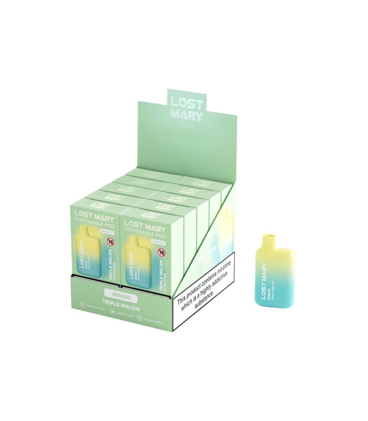 LOST MARY - BM600 VAPER NICOTINA 2% DESECHABLE SABOR TRIPLE MELÓN