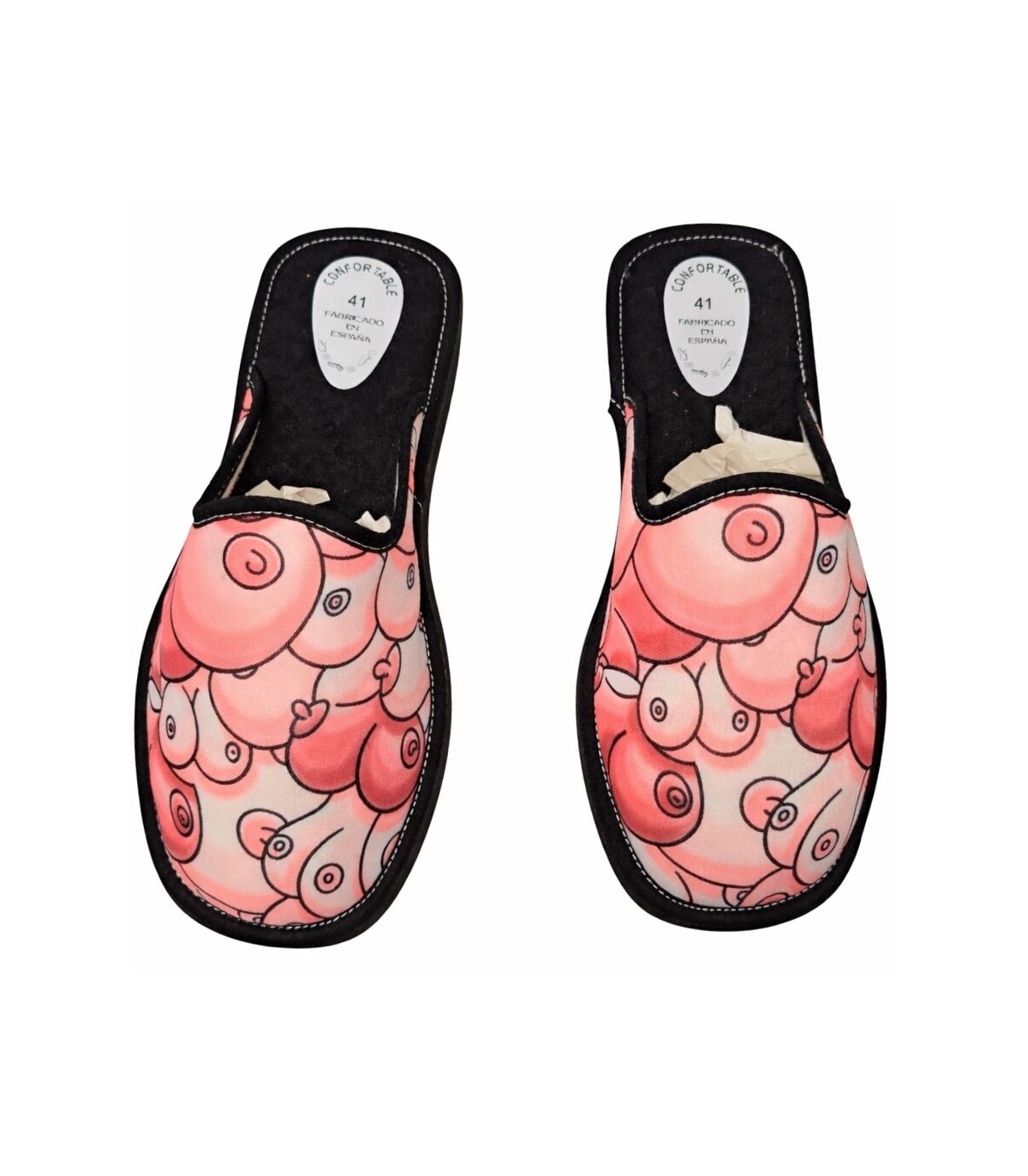Las Zapatillas de Estar por Casa con diseño de Tetas son un accesorio divertido, provocador y original, diseñado para añadir un toque de humor y picardía a cualquier momento. Fabricadas a mano en España con tejidos ultrasuaves, sirven para llamar la atención, romper el hielo o simplemente disfrutar de la máxima comodidad de una forma traviesa y sin palabras.
