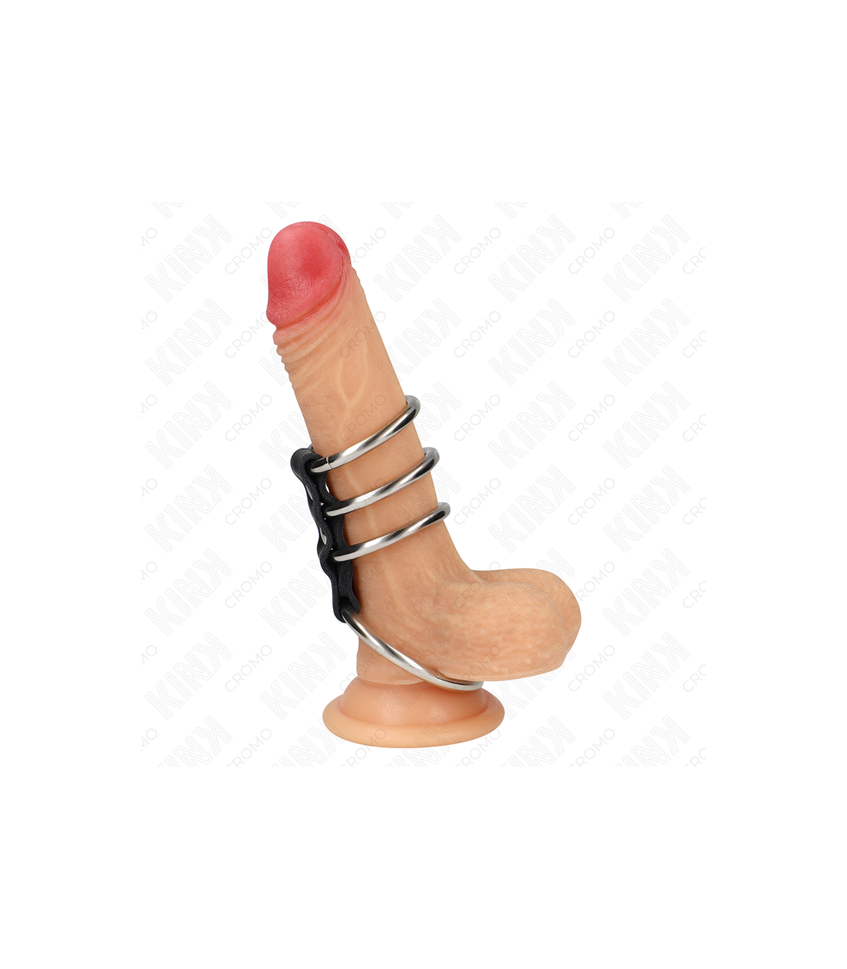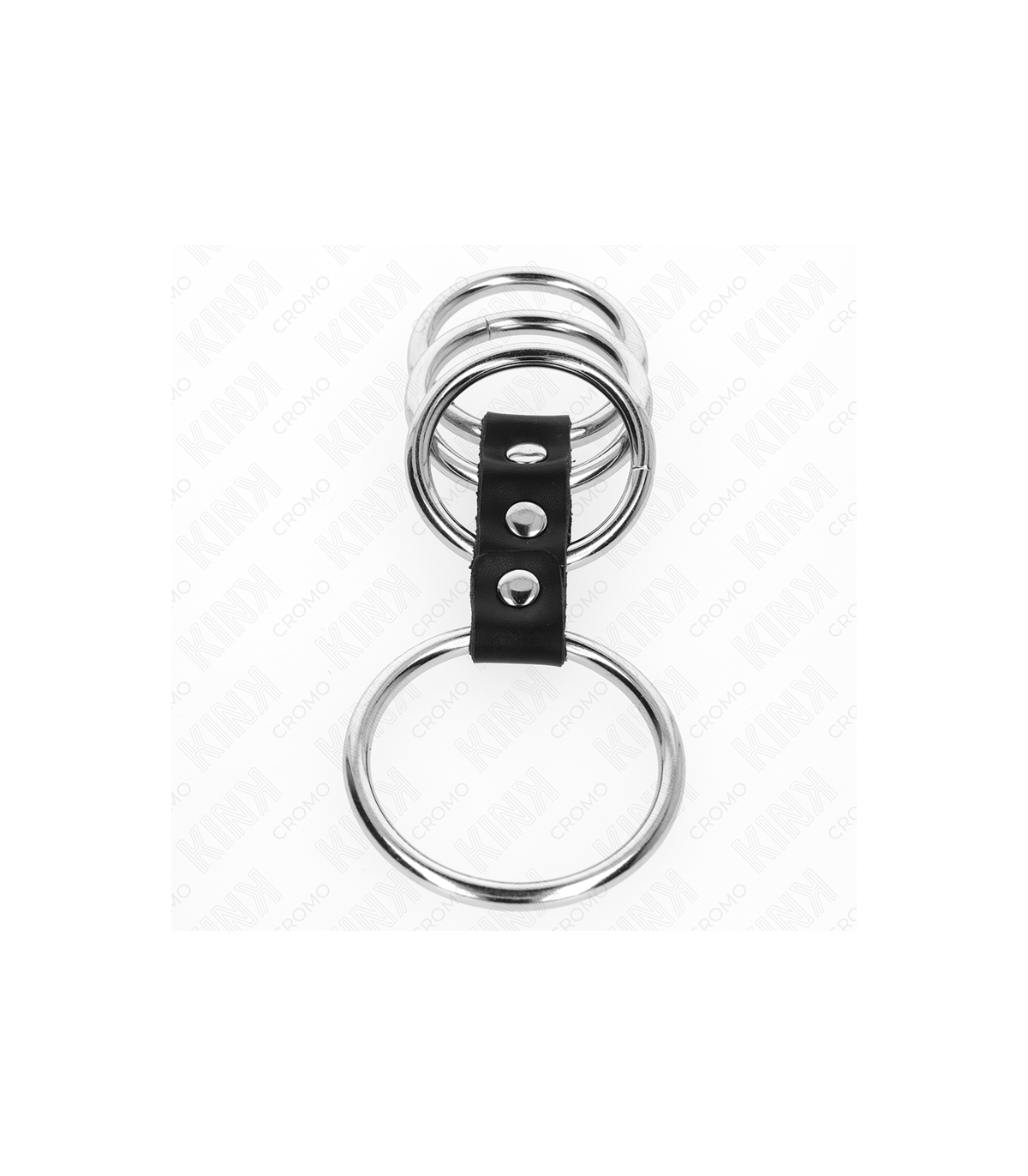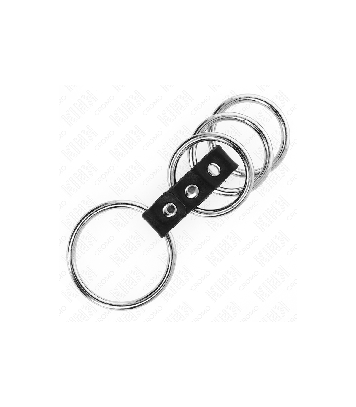 KINK - 4 ANILLOS PENE METAL 3.7 CM A 5 CM CONECTADOS POR CUERO