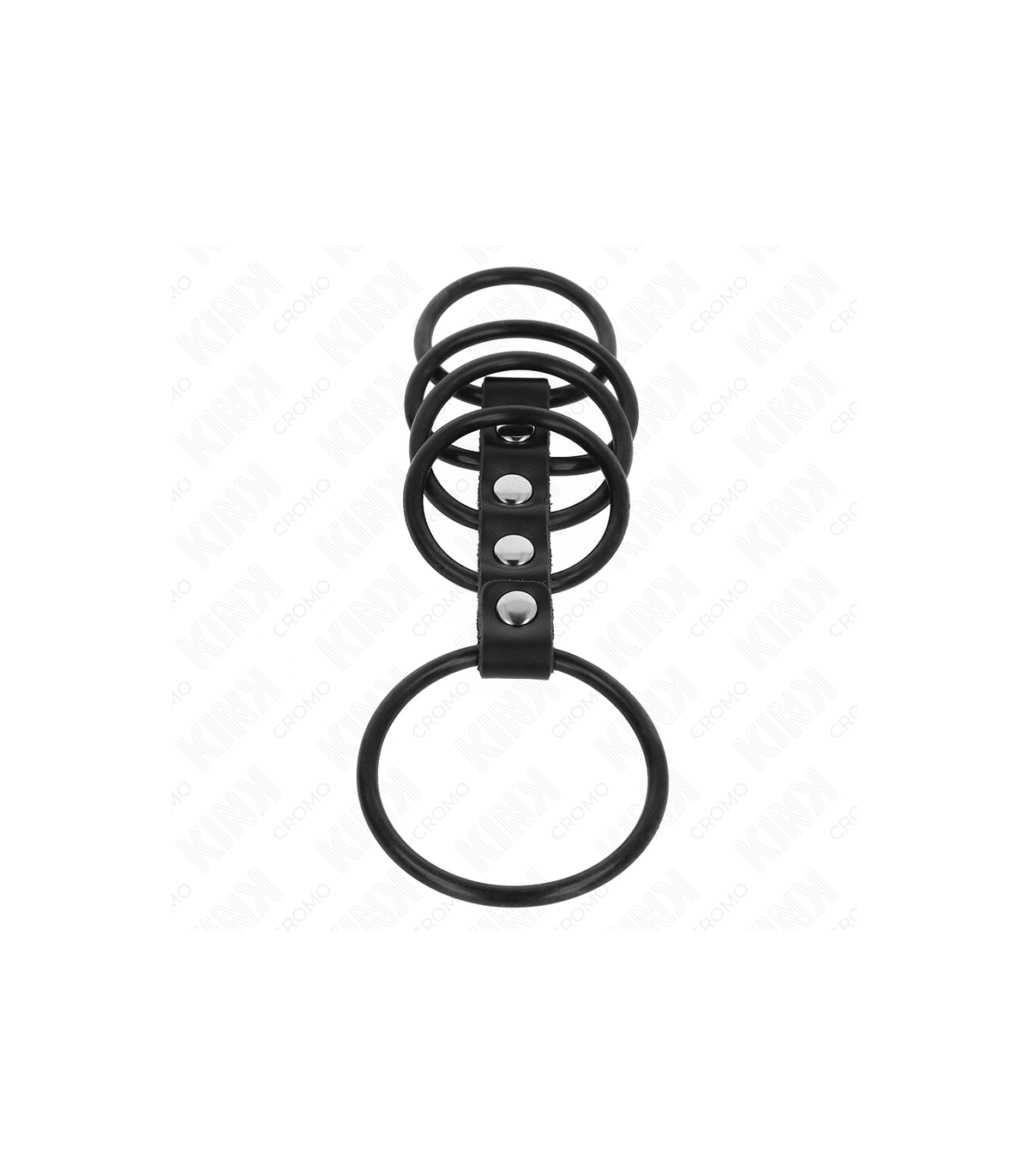 KINK - 5 ANILLOS PENE SILICONA 3.8 CM A 4.8 CM CONECTADOS POR CUERO