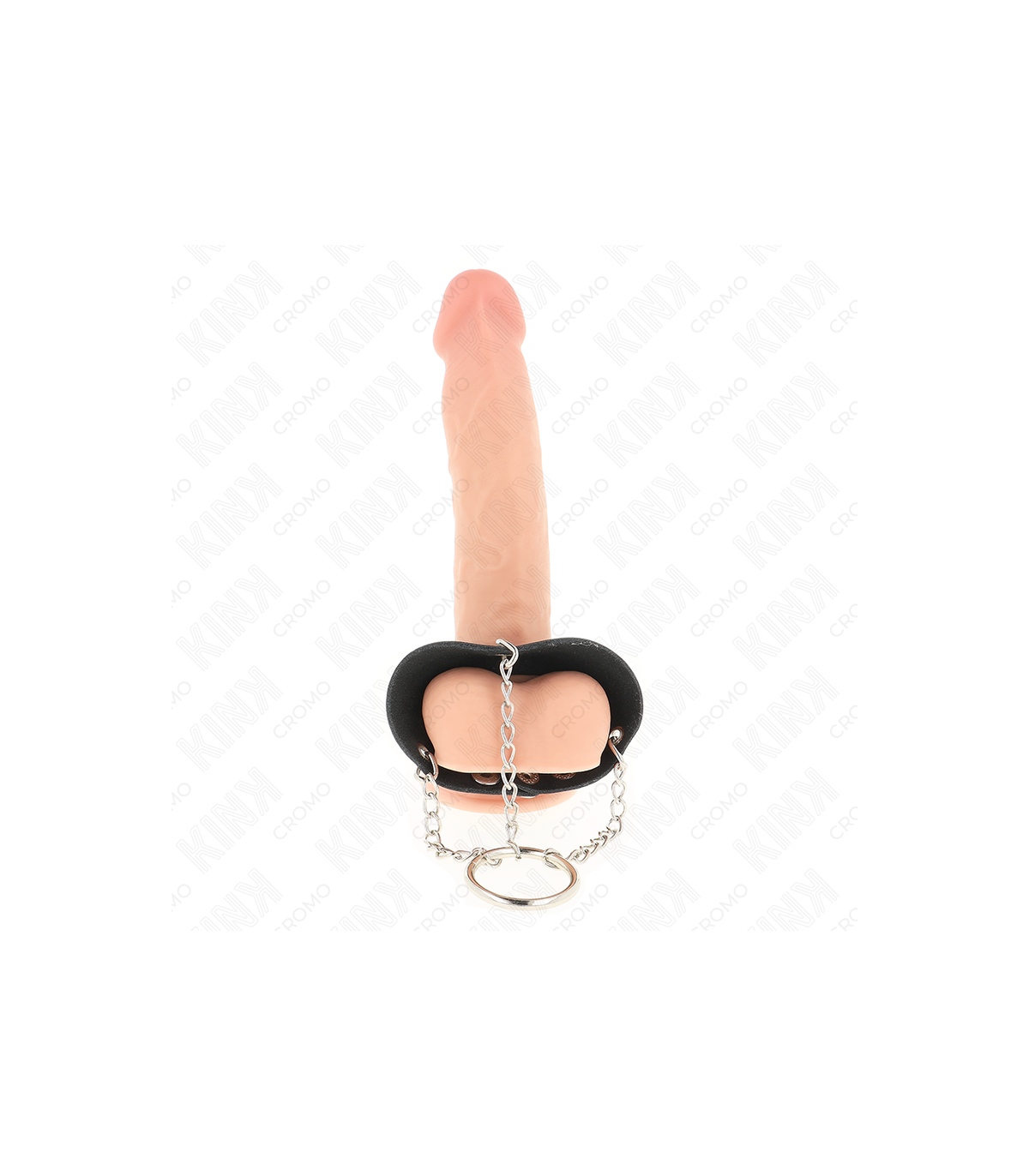 KINK - ANILLO PENE 4 CM CADENA 7 CM METAL CON CINTURÓN CUERO