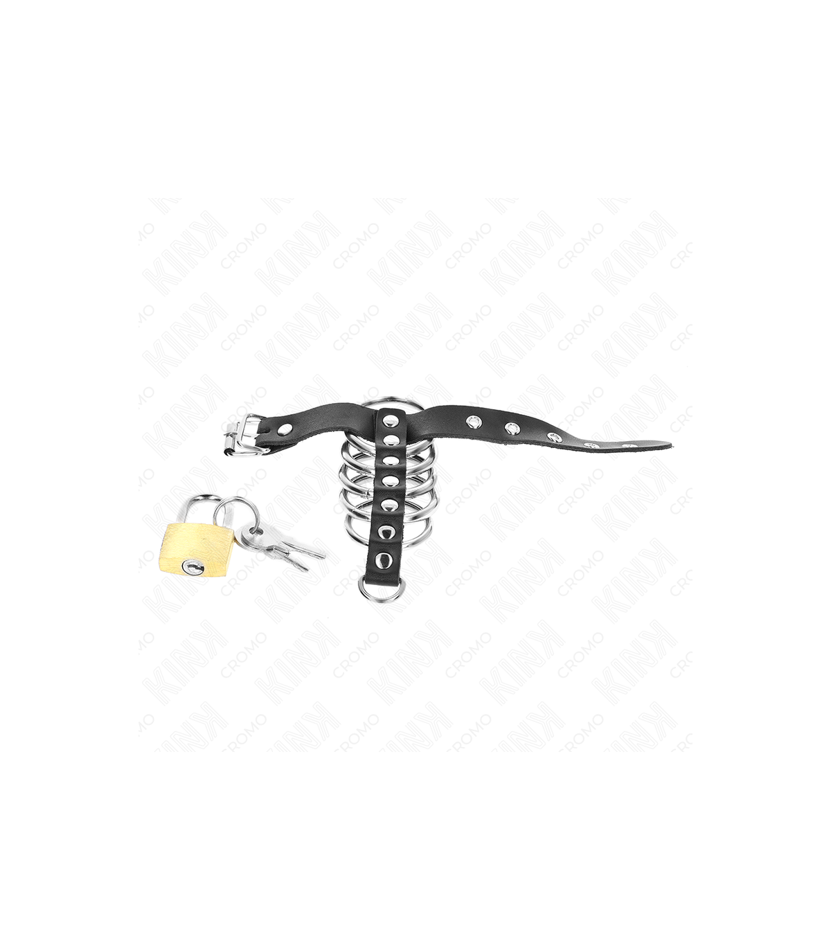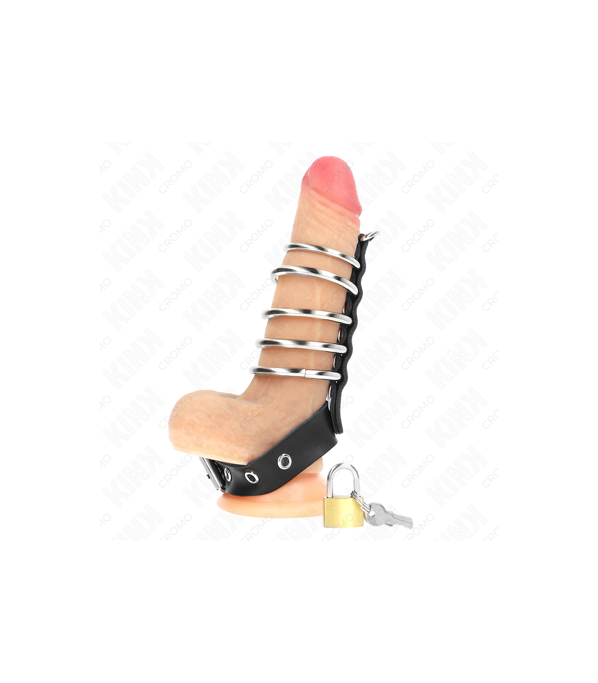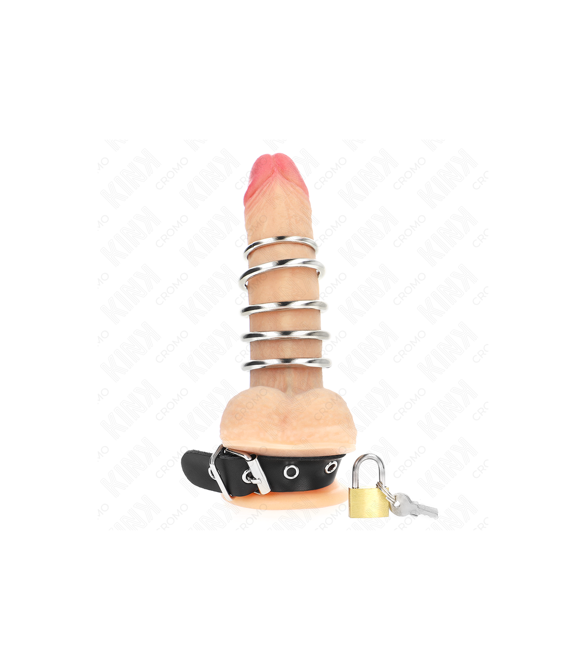 KINK - ANILLO PENE CUERO CORREA CON CERRADURA 21 X 2 CM Y 5 ANILLOS METAL DE 3 CM A 4 CM