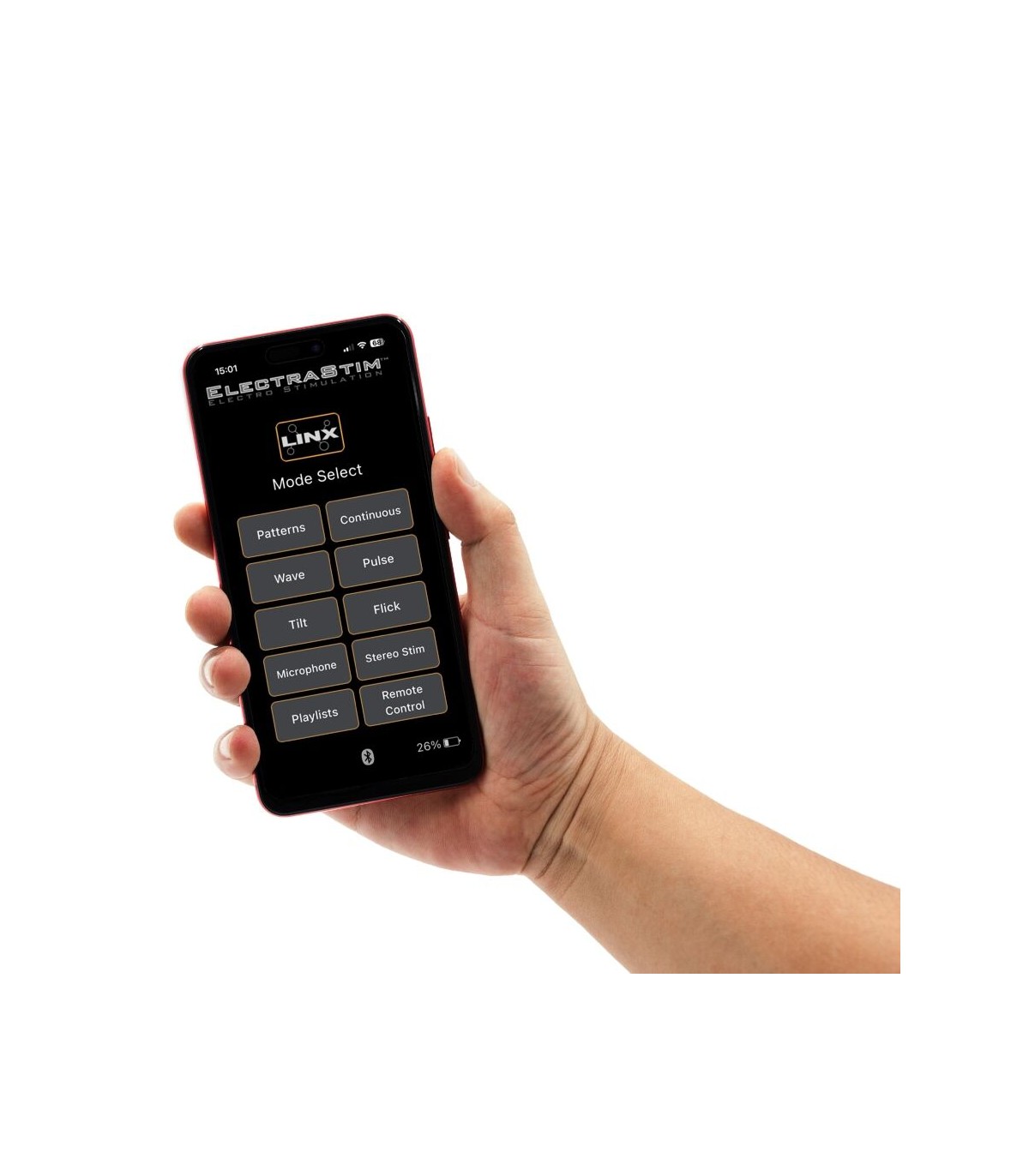 Al conectarse por Bluetooth a la aplicación gratuita ElectraStim Linx App, se desbloquea un amplio abanico de modos interactivos y opciones avanzadas de personalización. Desde el control manual de intensidad y frecuencia hasta modos dinámicos que reaccionan al movimiento, al sonido o a archivos de audio, Linx ofrece una de las experiencias de electroestimulación más versátiles del mercado.