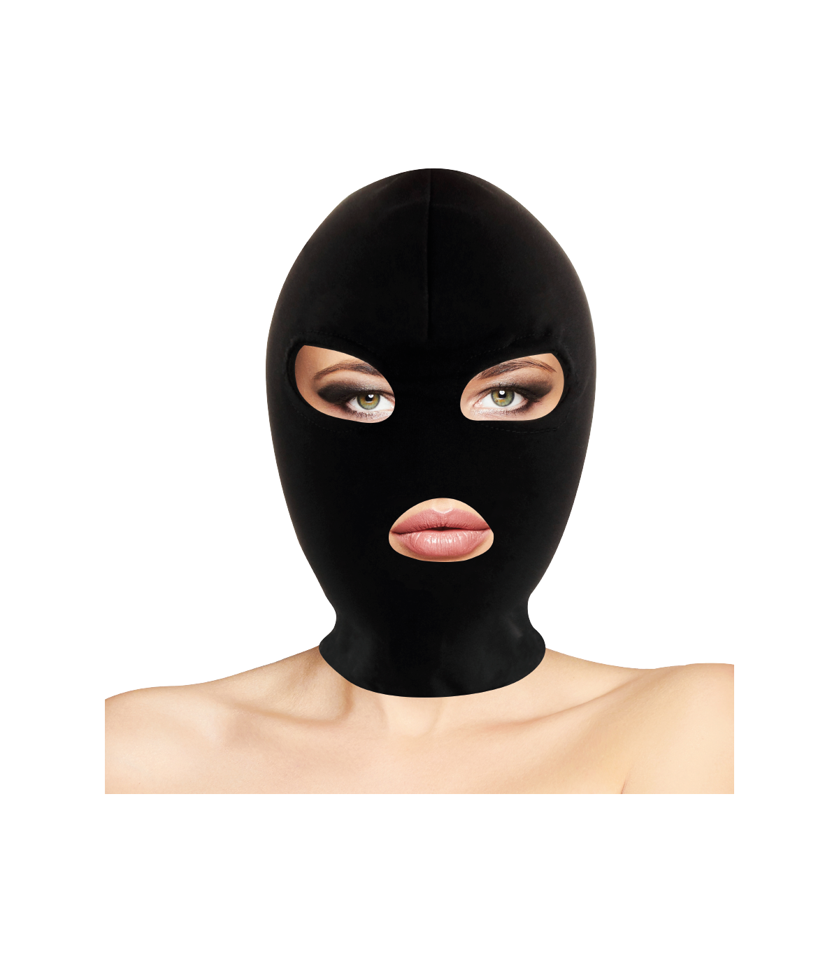 Confortable máscara / capucha con apertura para boca y ojos. Está diseñada para ajustarse perfectamente a la cabeza. El tejido solo permite que, entre un hilillo de luz, por lo que impide la visión y despierta otros sentidos. La máscara / capucha sirve para ambos sexos, y su tejido fino y ligero permite respirar fácilmente y oír cualquier chasquido. Y, lo mejor, ¡tendrás acceso a su boca!