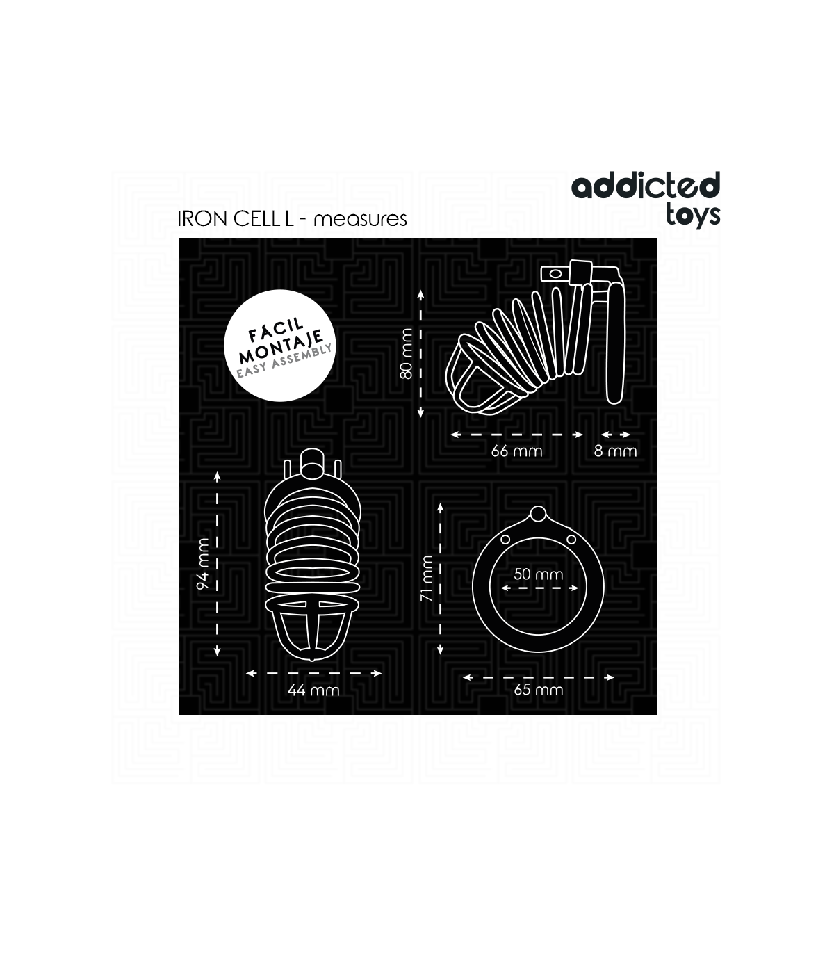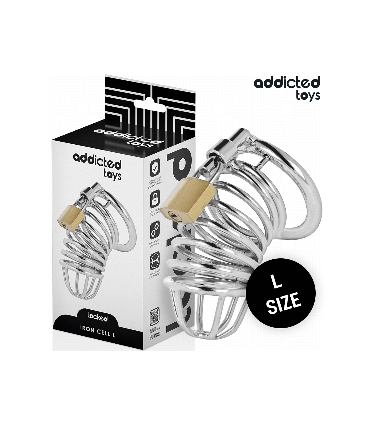 La jaula de castidad Locked - Iron Cell de Addicted Toys está diseñada para aquellos que buscan una experiencia intensa de restricción y control. Hecha de metal resistente, esta jaula ofrece seguridad, durabilidad y confort. Su ajuste perfecto asegura que solo quien tenga la llave pueda desbloquear el dispositivo, ideal para los más exigentes en cuanto a control y juego de castidad.