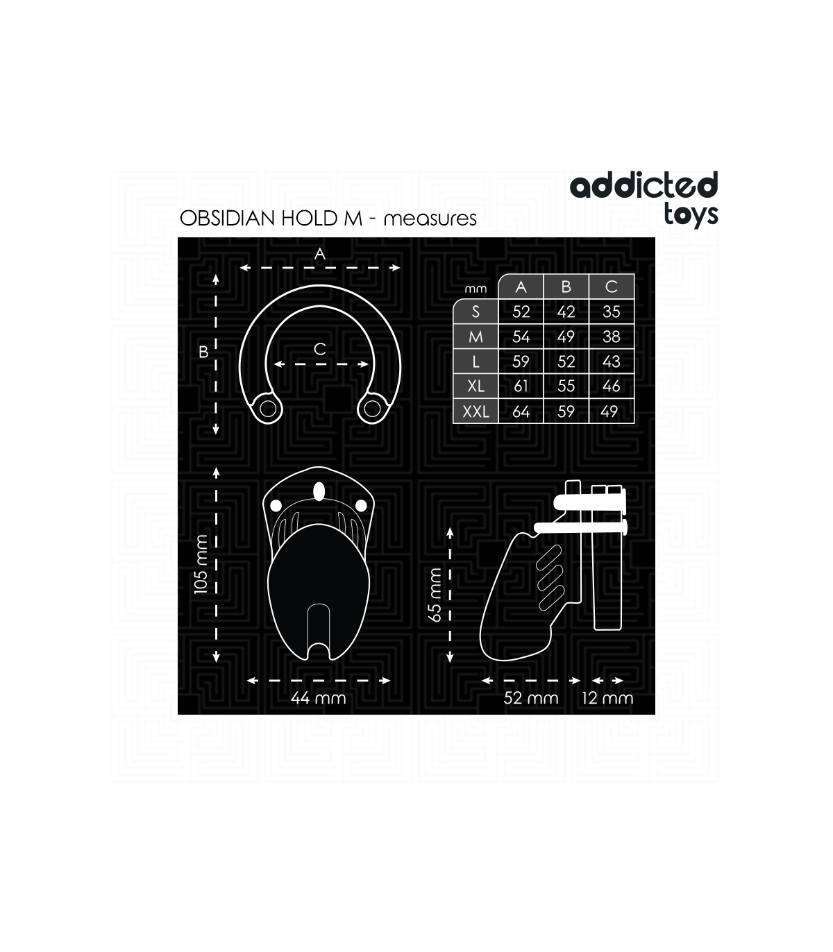 S: 35mm, M: 36mm, L: 42mm, XL: 45mm, XXL: 48mm