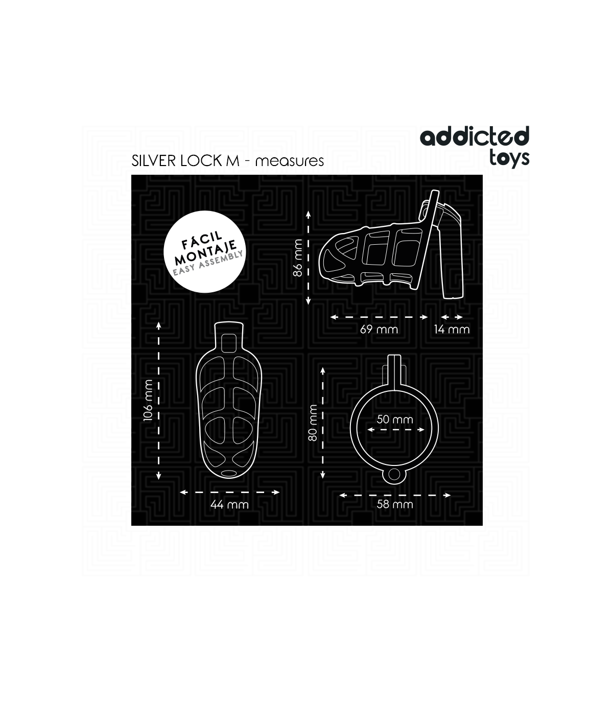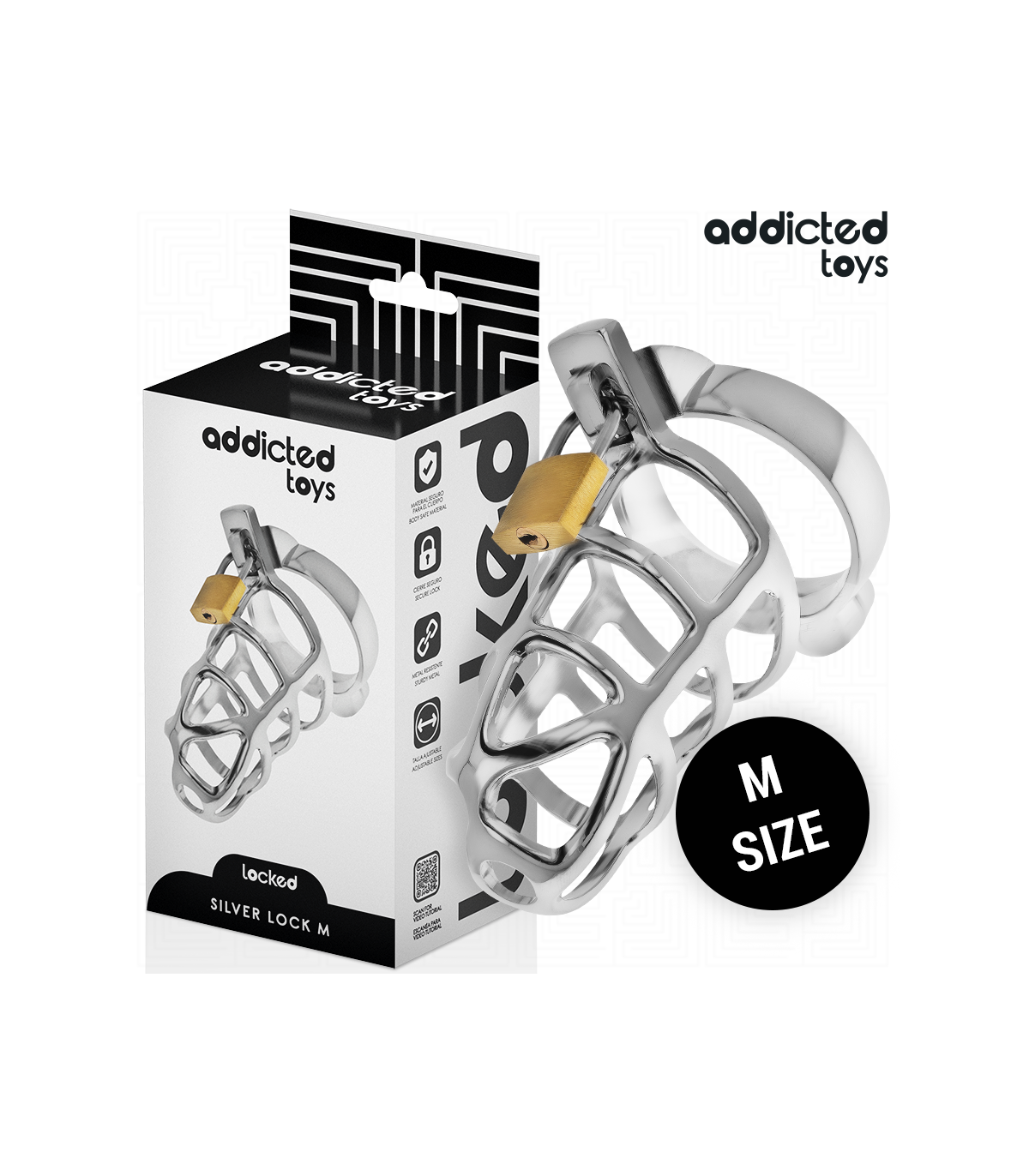 La jaula de castidad "Silver Lock" de Addicted Toys es una excelente opción para aquellos que buscan una experiencia de restricción de calidad y duradera. Fabricada en metal resistente, esta jaula proporciona un ajuste firme y seguro para los más exigentes en su experiencia de control y castidad.