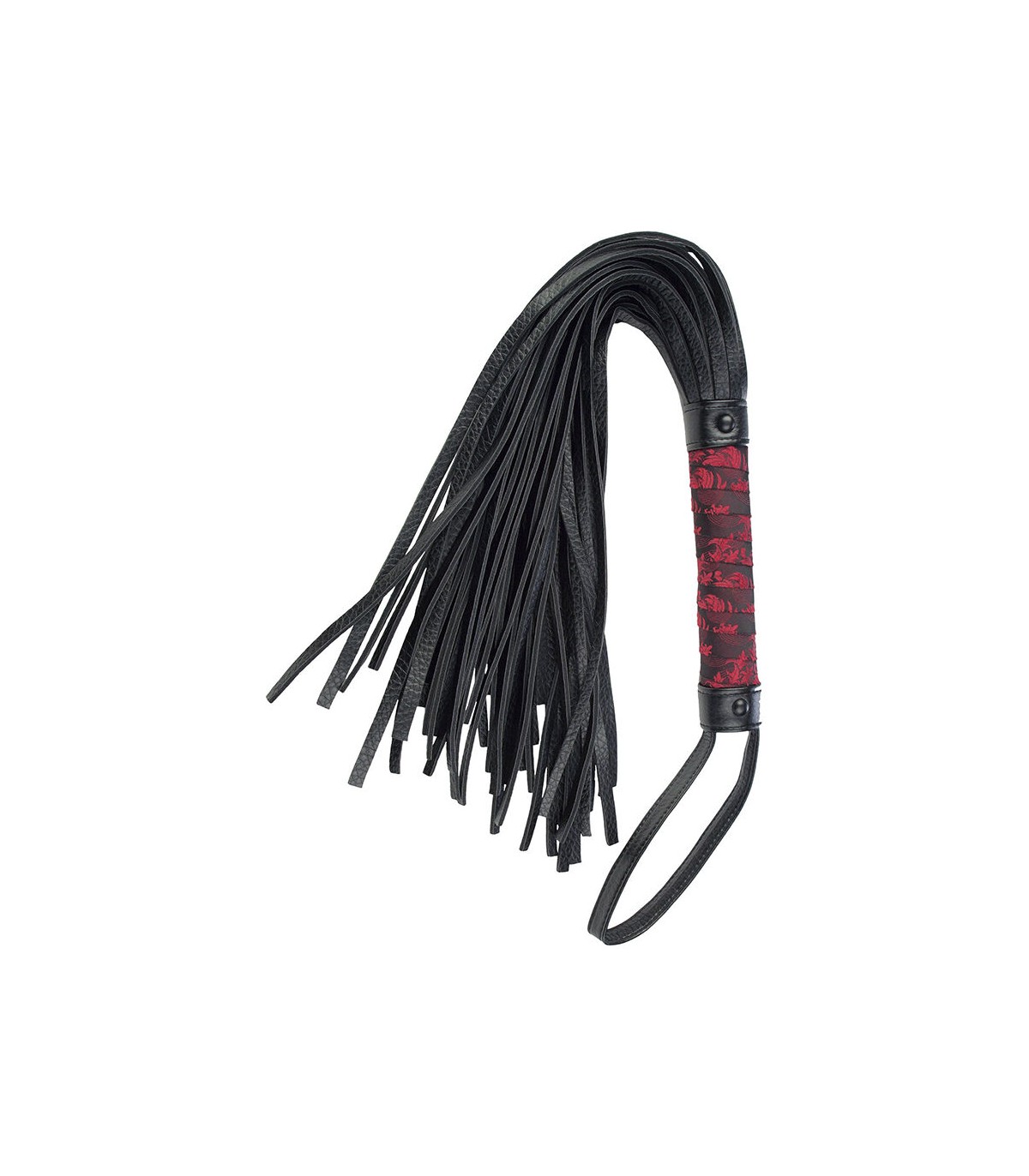 Despierta tu lado sumiso con el látigo Scandal, con una elegante tela de diseño en rojo y negro y un mango resistente. Las suaves borlas provocan y hacen cosquillas para un juego suave, o proporcionan un aguijón agudo y satisfactorio al usarlo con intensidad; perfecto tanto para principiantes como para amantes del fetiche.