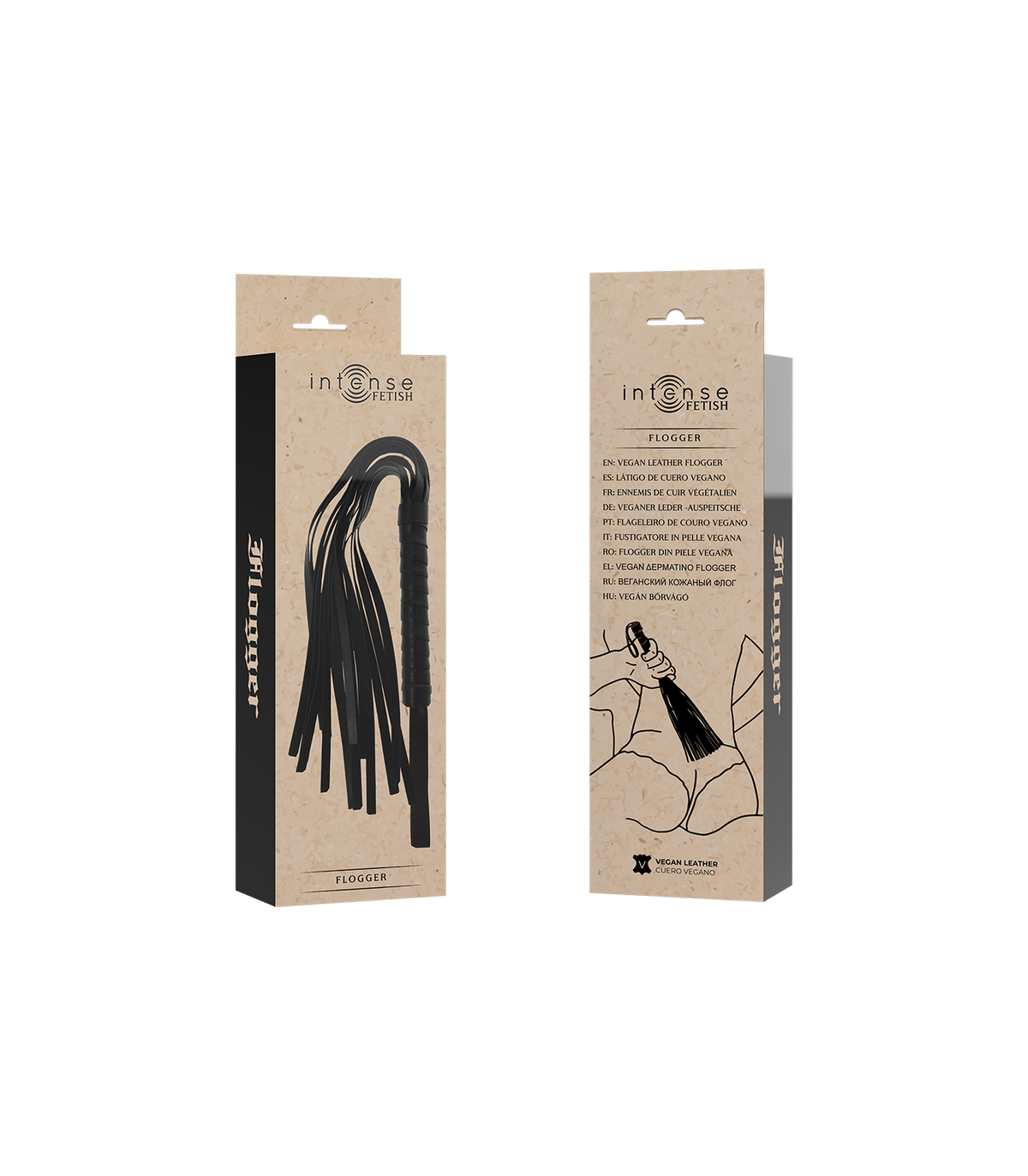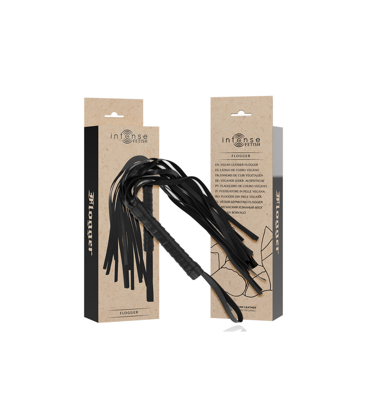 El látigo de cuero vegano de la marca INTENSE FETISH es un accesorio diseñado para los amantes del mundo adulto que desean explorar sus deseos más ardientes y sensuales. Este látigo ha sido elaborado cuidadosamente con cuero vegano de alta calidad, lo que garantiza una experiencia intensa sin comprometer tus valores éticos.