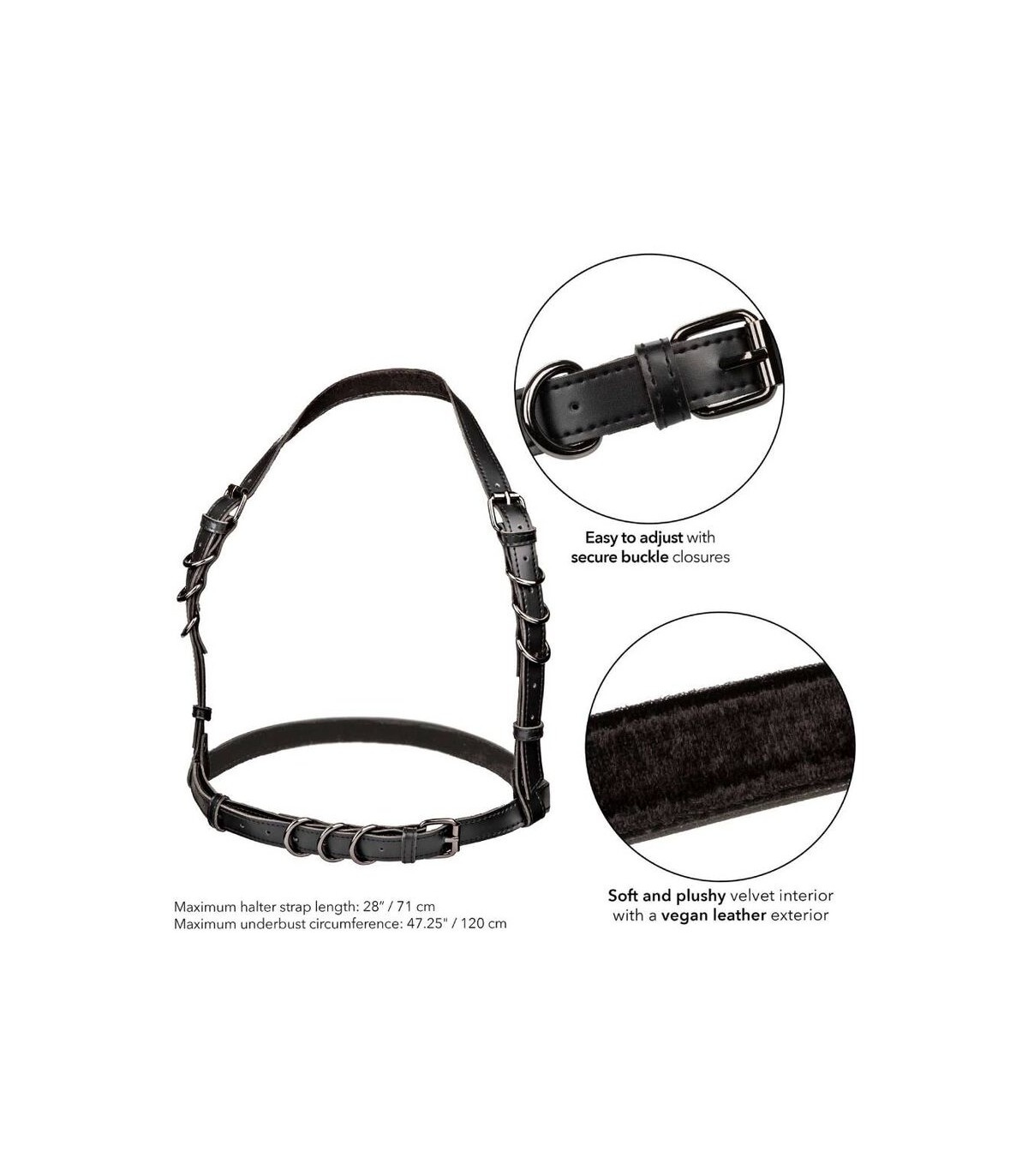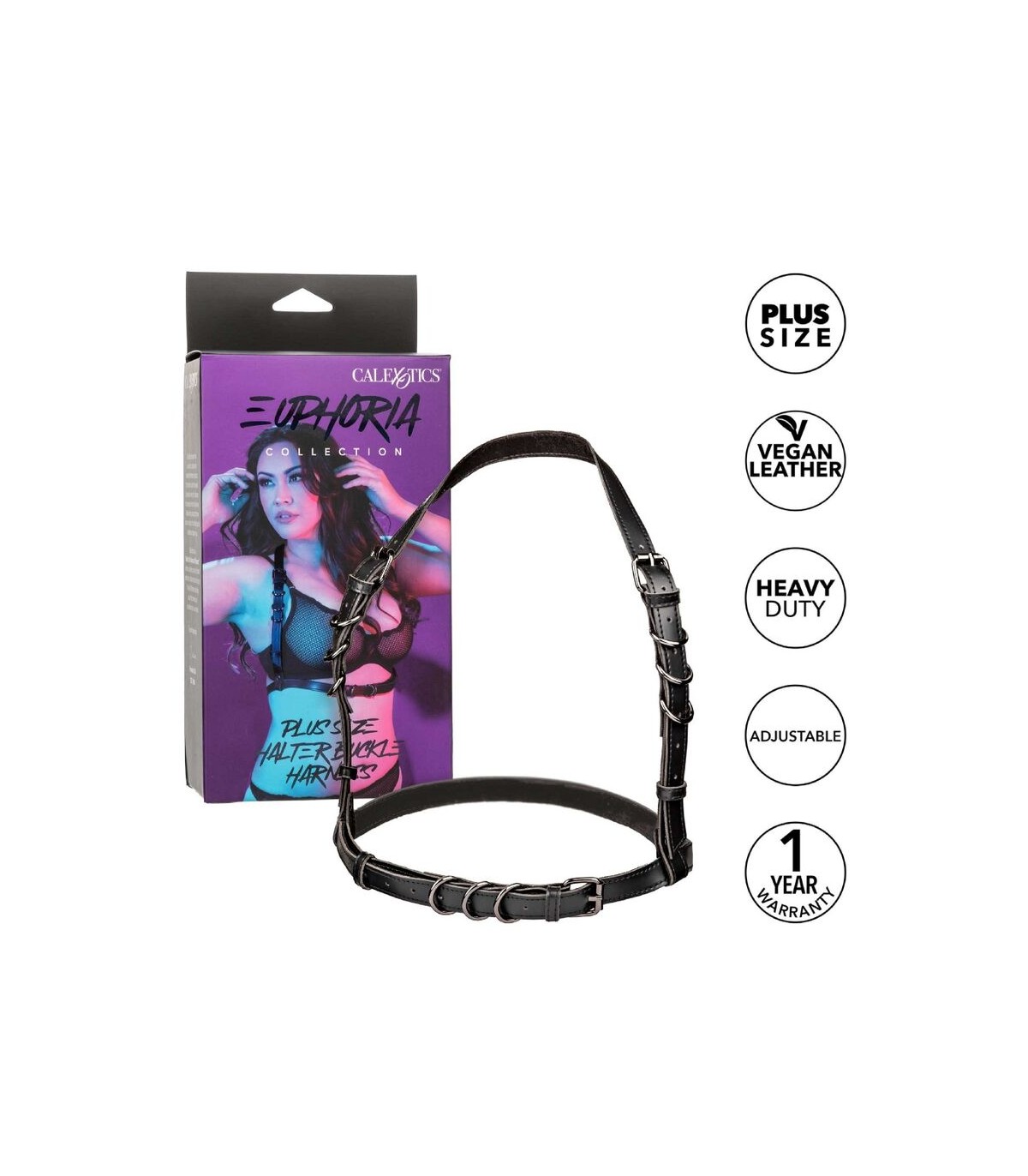 Presentamos el Arnés de Hebilla Halter de la Colección Euphoria en Talla Plus: un accesorio lujoso y empoderador diseñado para celebrar tus curvas y mejorar tu placer. Este arnés premium de estilo halter está diseñado para declaraciones audaces, ya sea para darle sabor a momentos íntimos o agregar un toque único a tu estilo festivalero. El cierre seguro con hebilla fácil de ajustar garantiza un ajuste cómodo, permitiéndote sumergirte completamente en fantasías. Disfruta del lujoso interior de terciopelo y del exterior de cuero vegano, complementado con acentos metálicos que no se empañan. Específicamente diseñado para individuos de talla plus, este arnés ofrece un soporte excepcional, estilo y confianza en tu sensualidad. Desbloquea nuevos reinos de placer y autoexpresión con este accesorio versátil y elegante.