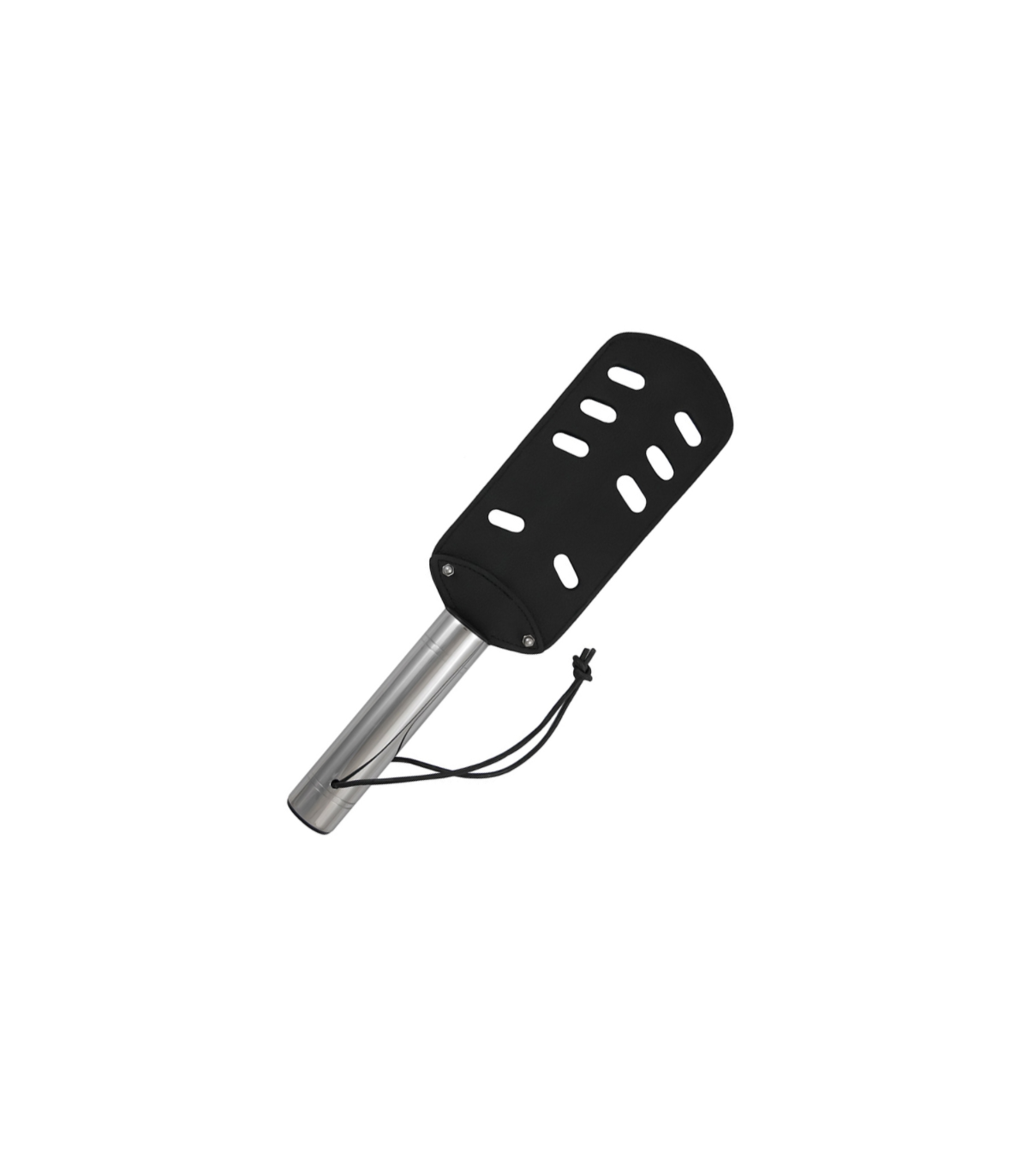 Suave por un lado y metálico en acero inoxidable por el otro, esta es una pala azotadora para un juego de calidad. Hecho de cuero genuino original y acero inoxidable, la pala tiene un núcleo de metal con memoria, por lo que continuamente vuelve a su forma.