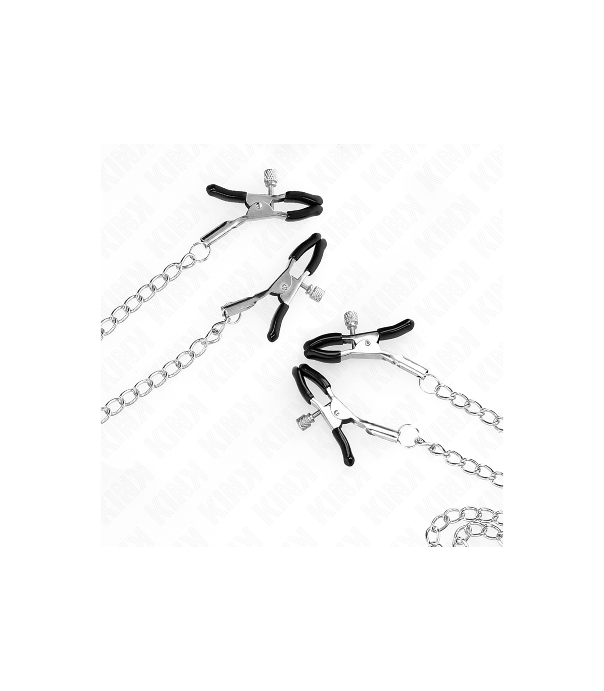 KINK - PINZAS PARA PEZONES Y CLÍTORIS 4 ENGANCHES AJUSTABLE PLATEADO