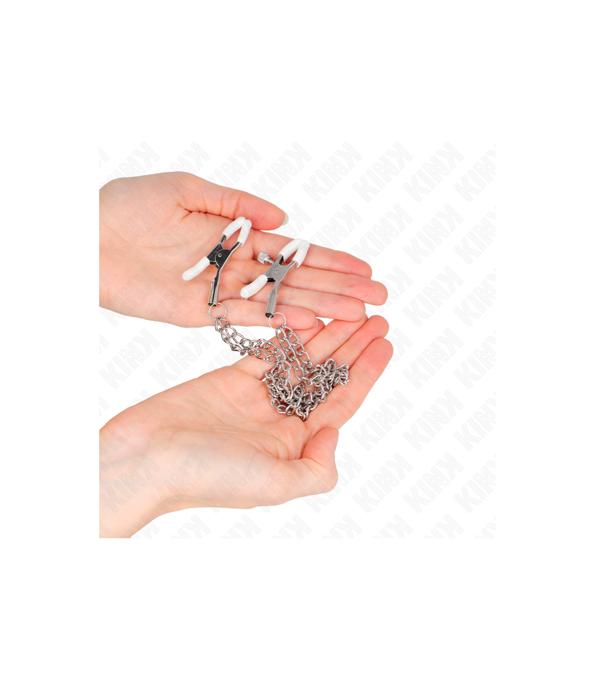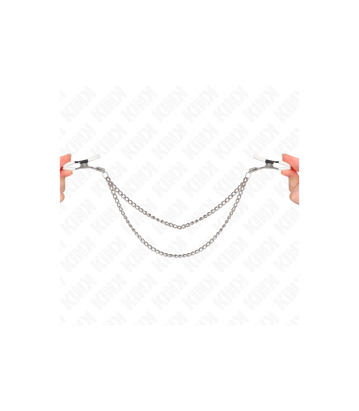 KINK - PINZAS PARA PEZONES CON DOBLE CADENA FINA PLATEADO 20/23 CM