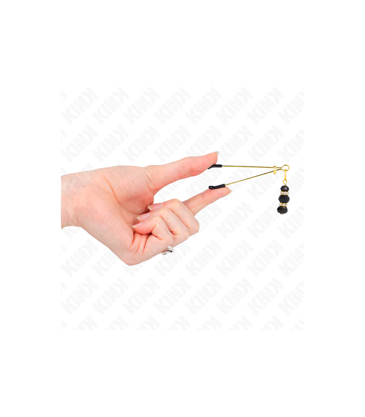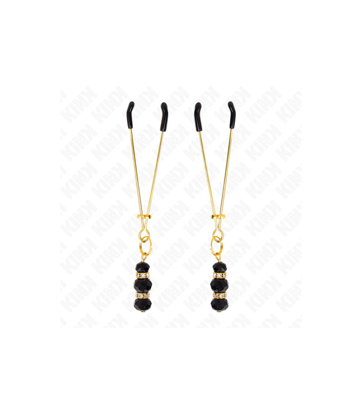 KINK - PINZAS PARA PEZONES DORADA FINA CON TRIPLE BOLA DE VIDRIO NEGRO 7 CM