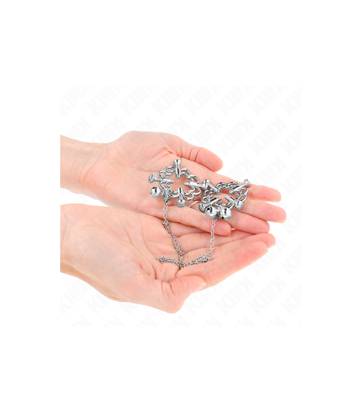 • Pinzas con Cascabeles y Campanas: Añade un elemento auditivo a tu juego con pinzas que incluyen cascabeles o campanas. Cada movimiento produce un sonido excitante, aumentando la anticipación y la estimulación. Estas pinzas son perfectas para juegos sensoriales y de rol.