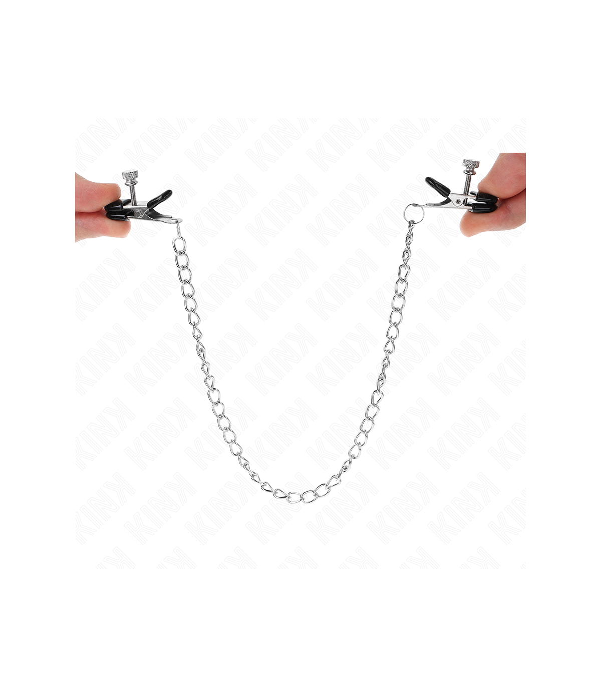 KINK - PINZAS PARA PEZONES PLANAS NEGRO CON CADENA PLATEADO 34 CM