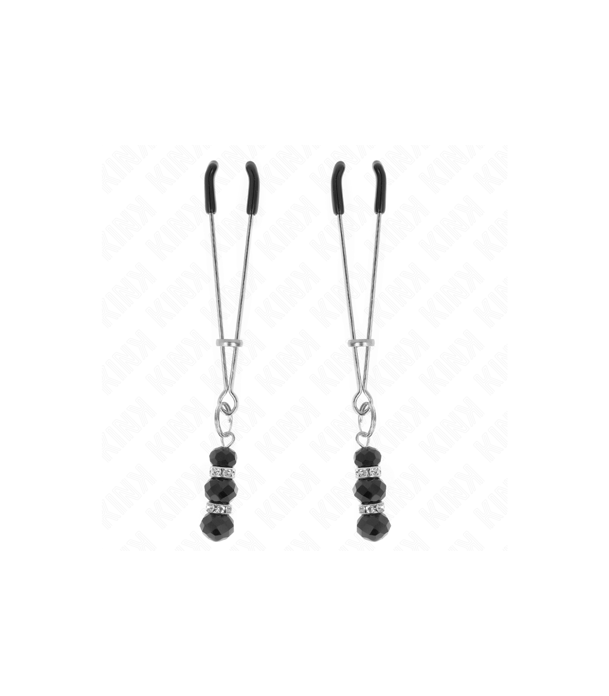 KINK - PINZAS PARA PEZONES PLATEADA FINA CON TRIPLE BOLA DE VIDRIO NEGRO 7 CM