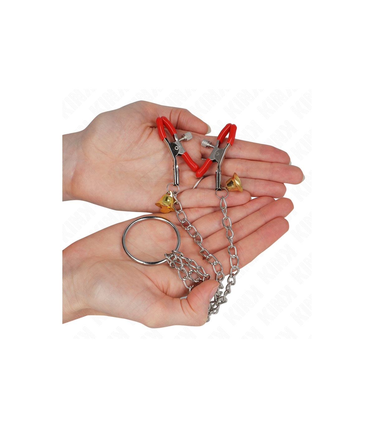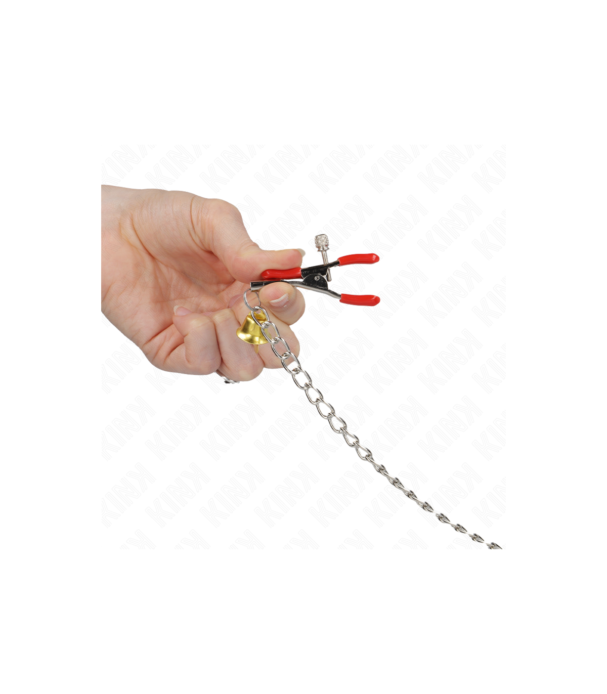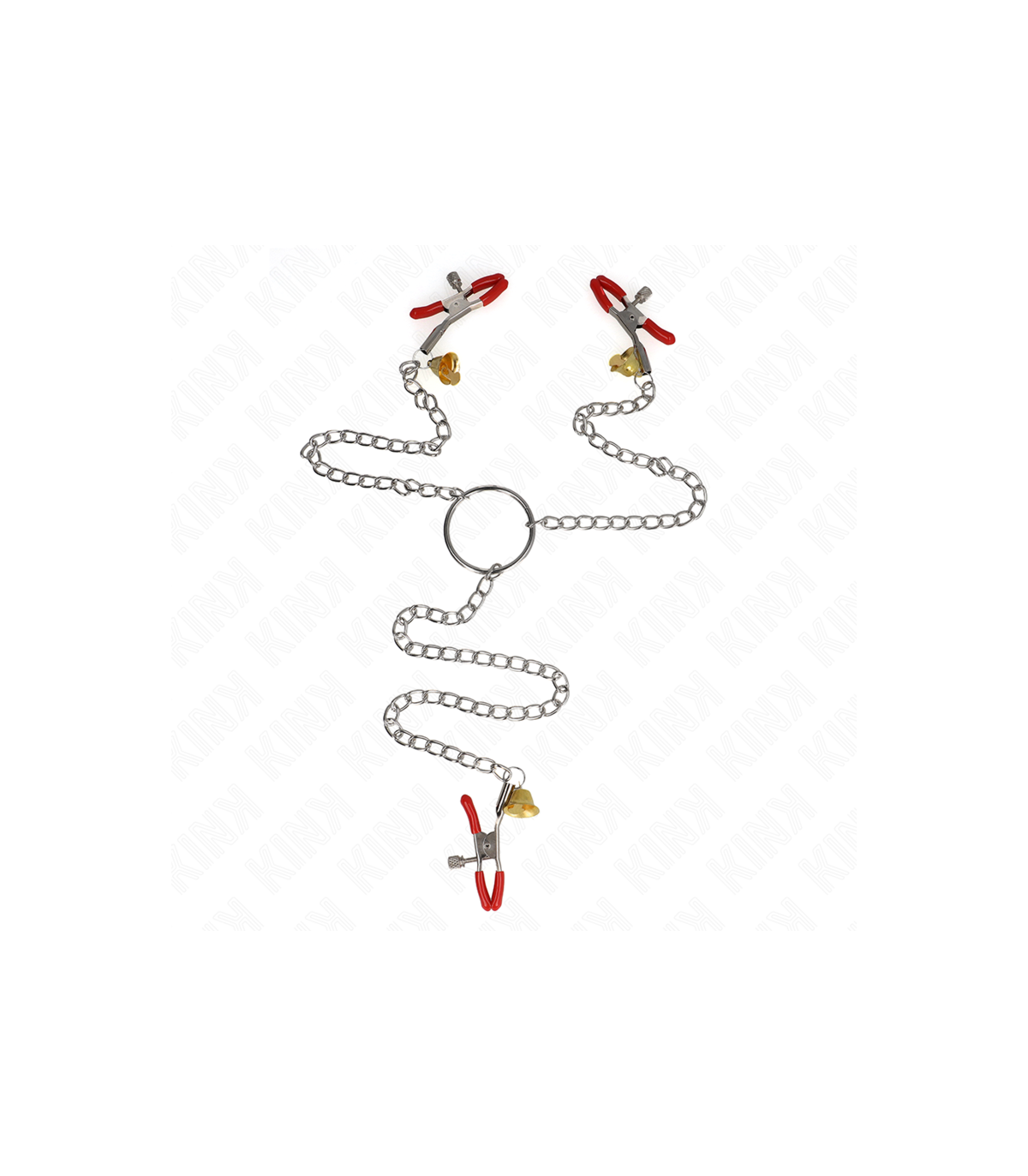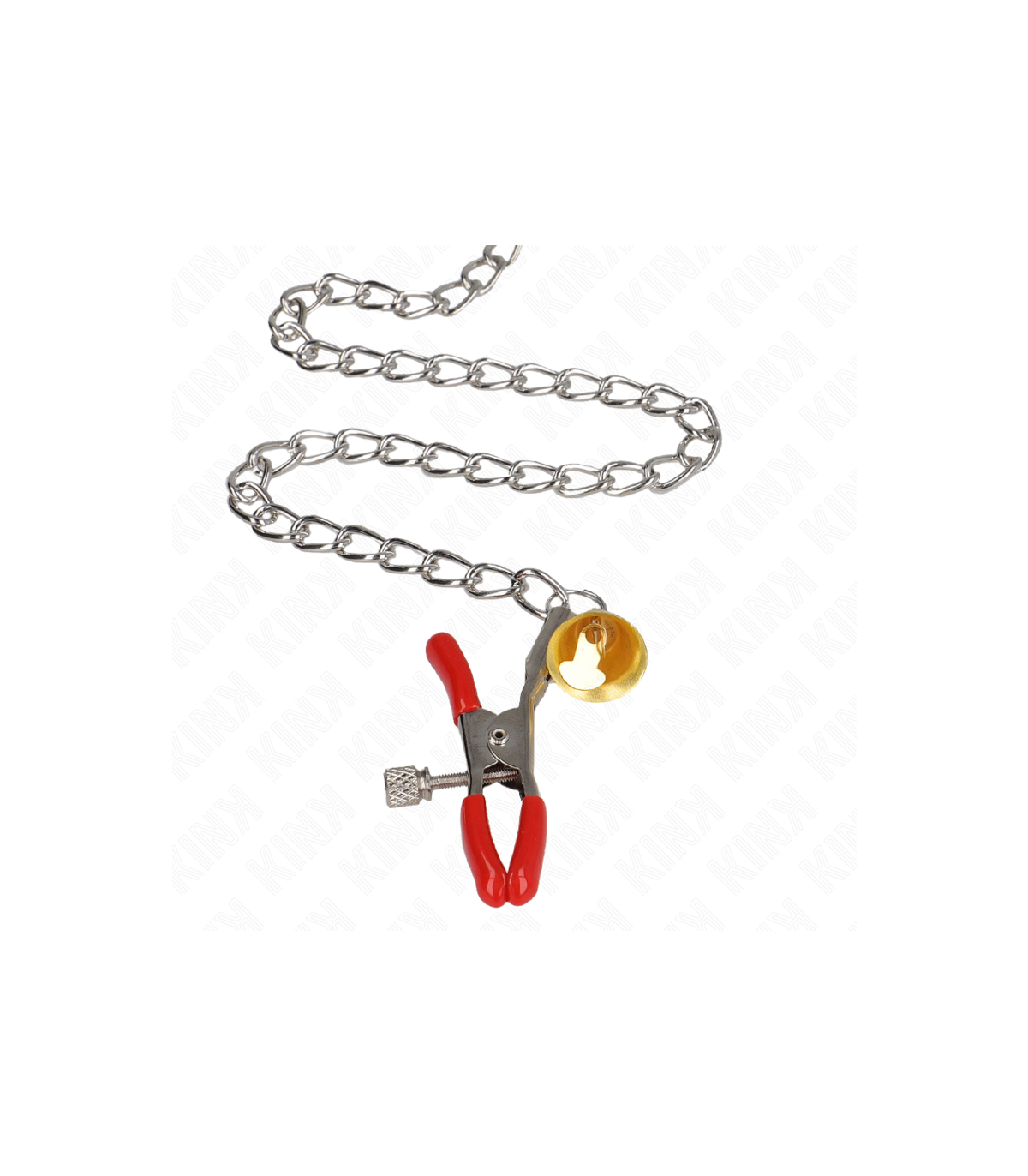 KINK - PINZAS PARA PEZONES Y CLÍTORIS ROJAS CON CASCABEL DORADO Y CADENA 30 CM