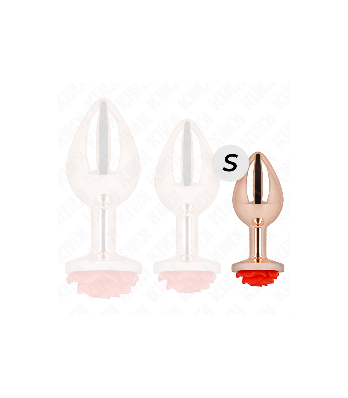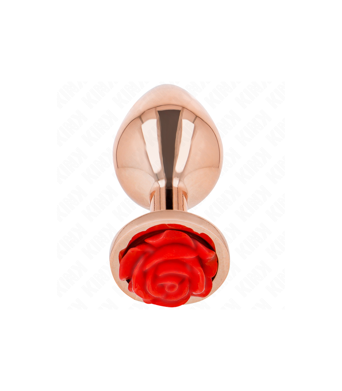 Plug Anal Metálico Oro Rosa con Adorno de Rosa Roja - Elegante, Suave y Sensual