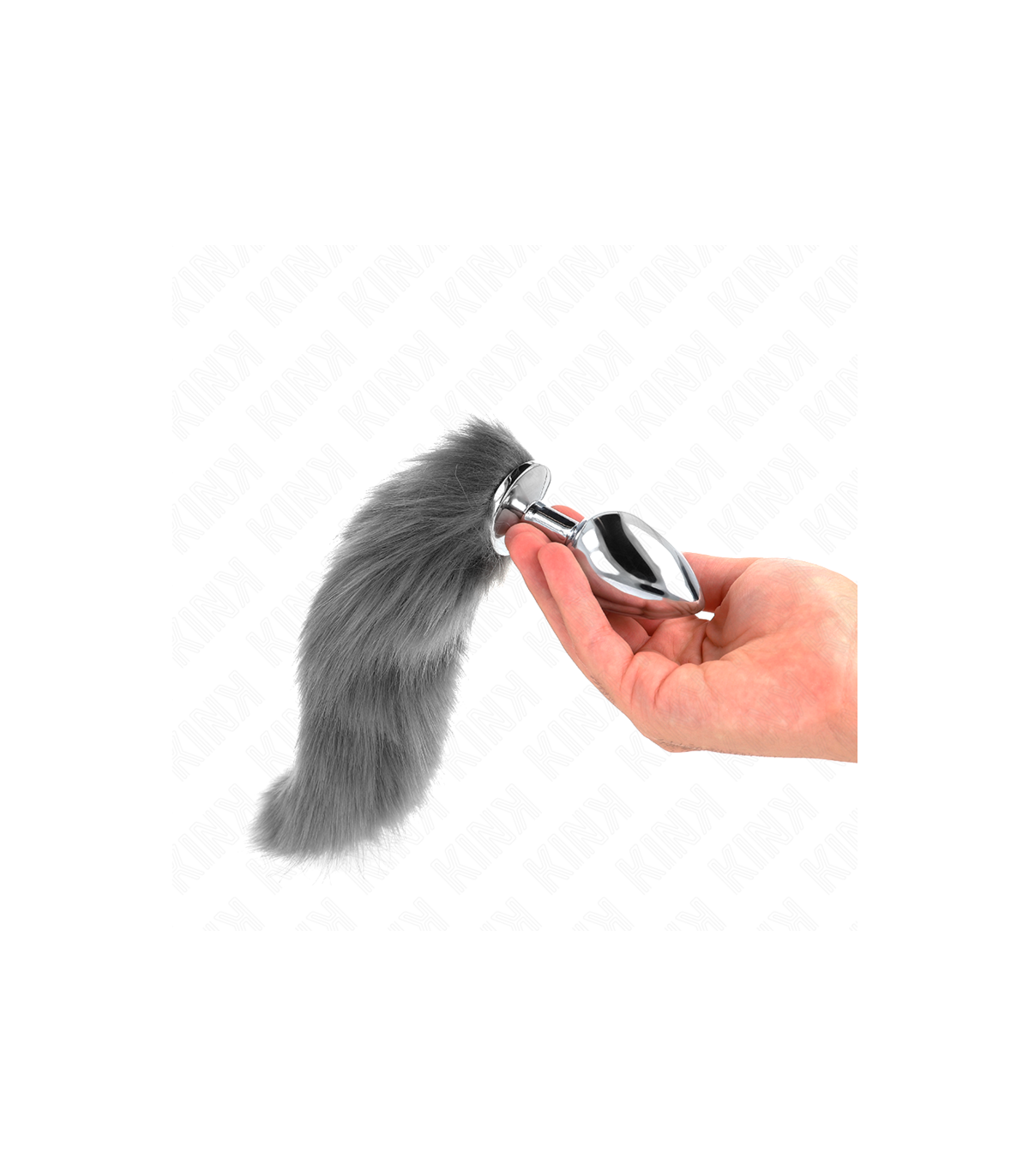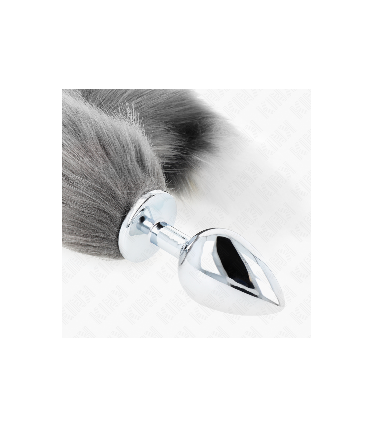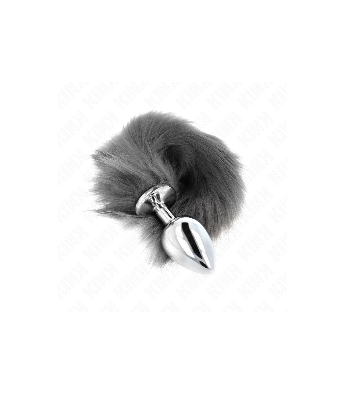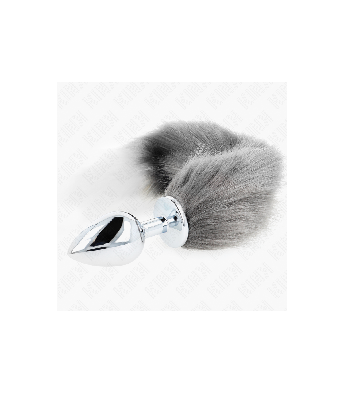 KINK - PLUG ANAL TALLA L 10 X 4 CM CON COLA SINTÉTICA 40 CM PLATEADO Y BLANCO