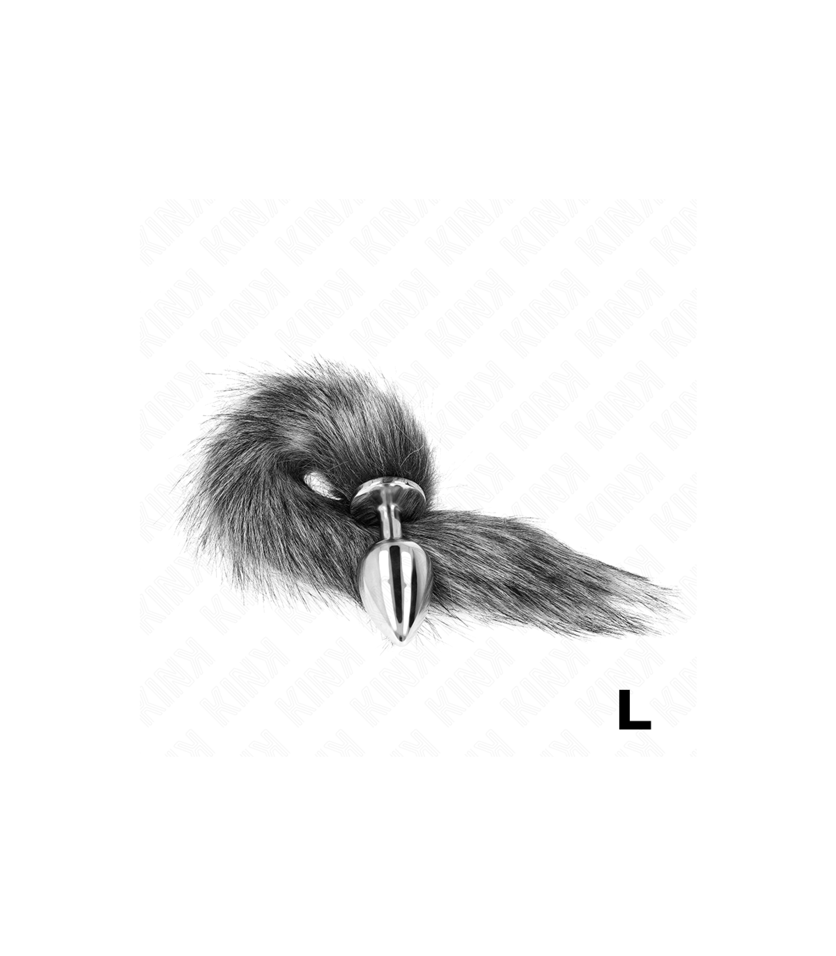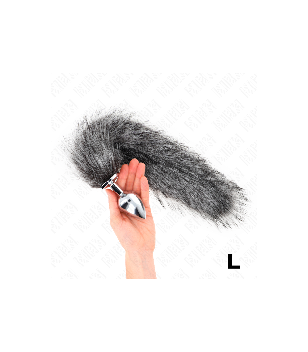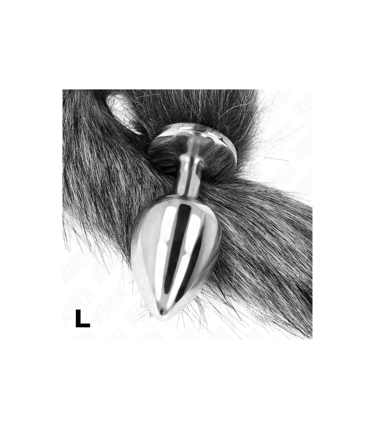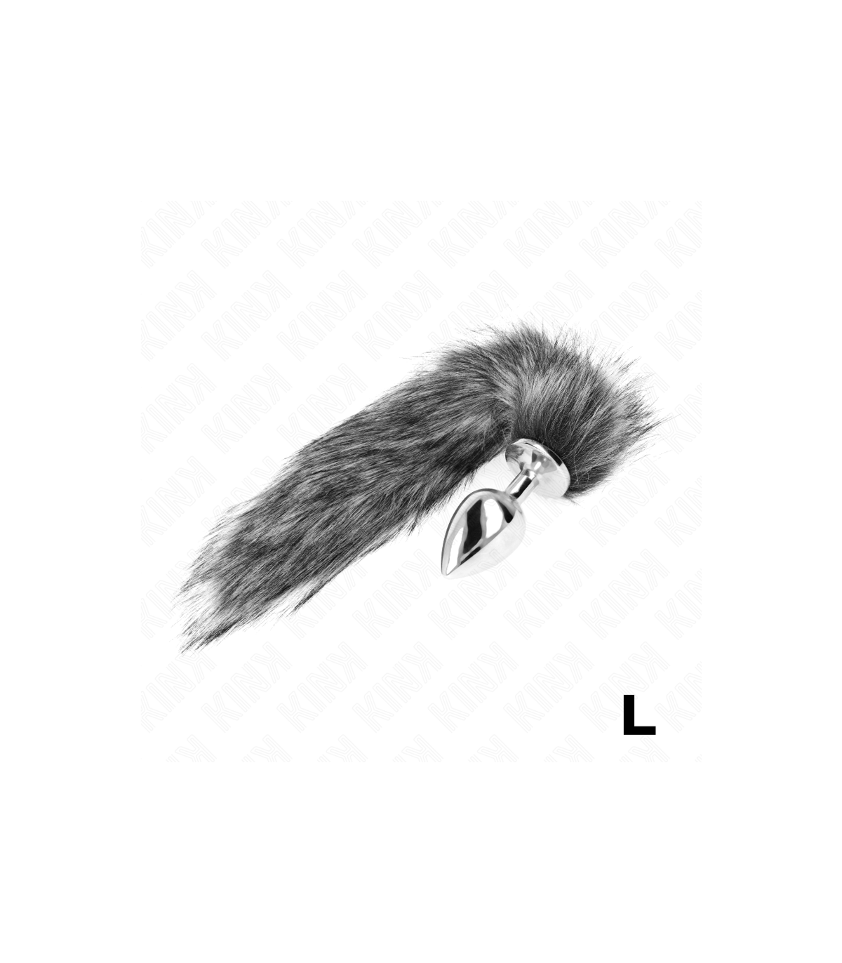 KINK - PLUG ANAL TALLA L 10 X 4 CM CON COLA SINTÉTICA 40 CM PLATEADO