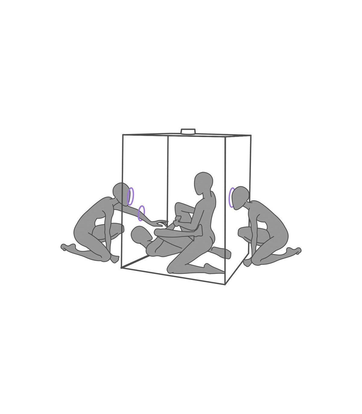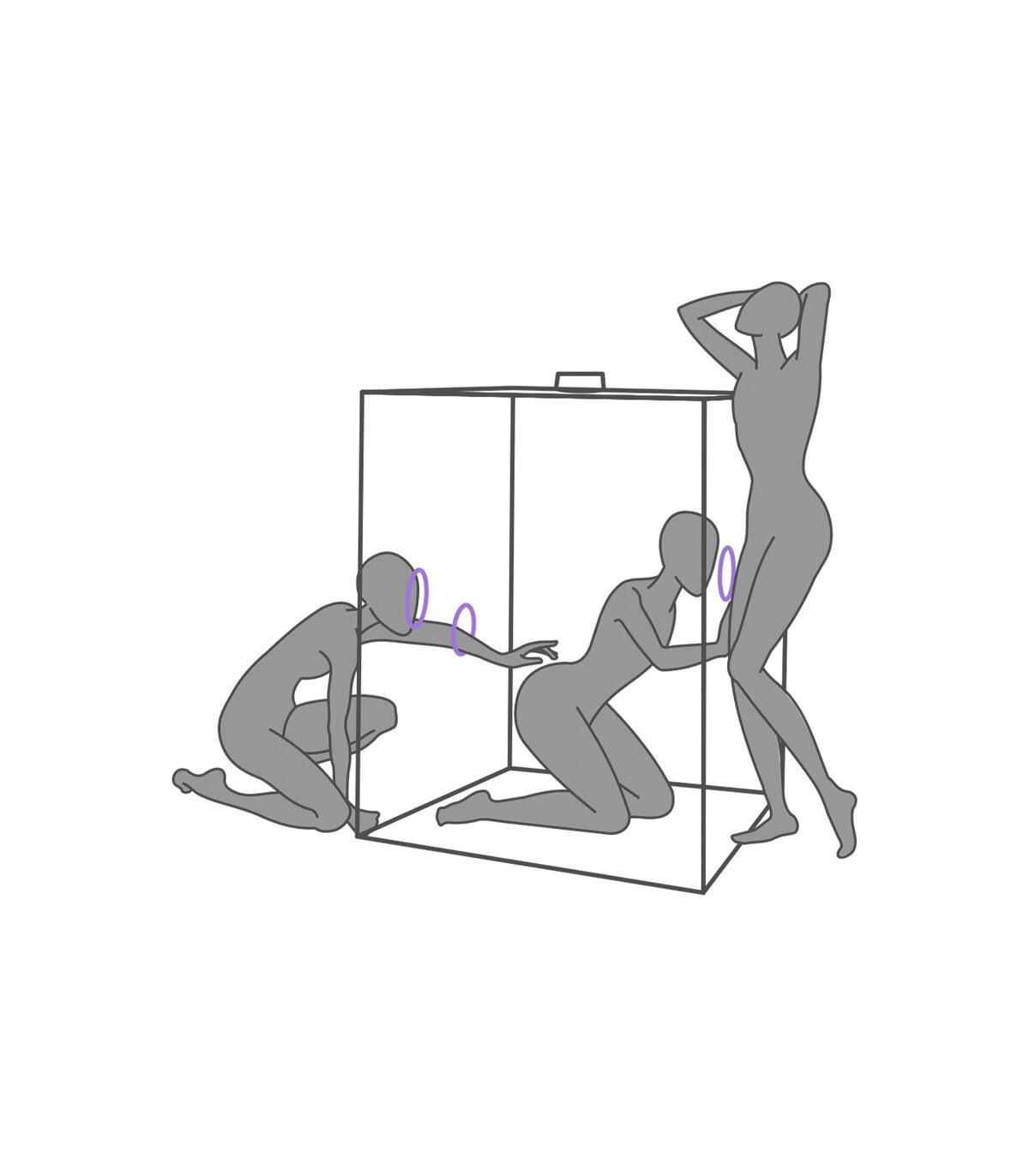 La cabina SCANDALE ofrece un espacio cerrado donde las fantasías más íntimas se pueden experimentar tanto en encuentros privados como en escenarios de exhibicionismo. El sistema de bridas Holedome y Eyedome garantiza una sujeción versátil, mientras que los ventiladores Flipping Fans proporcionan una estimulación adicional. La luz LED crea la atmósfera perfecta para cada sesión, transformando cada momento en algo intenso y memorable.