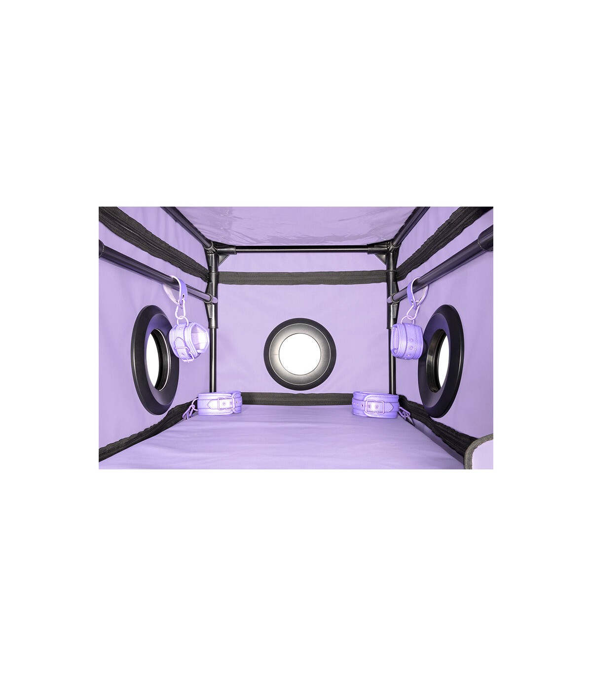 Diseñada para quienes saben que el placer vive en los detalles, LA NICHE es el rincón secreto donde la sumisión se encuentra con la estética, y el control se transforma en arte. Esta cabina íntima, en un provocador tono morado, está pensada para brindar experiencias intensas de inmovilización, exhibicionismo y juego de roles, todo en un espacio compacto pero profundamente inmersivo.