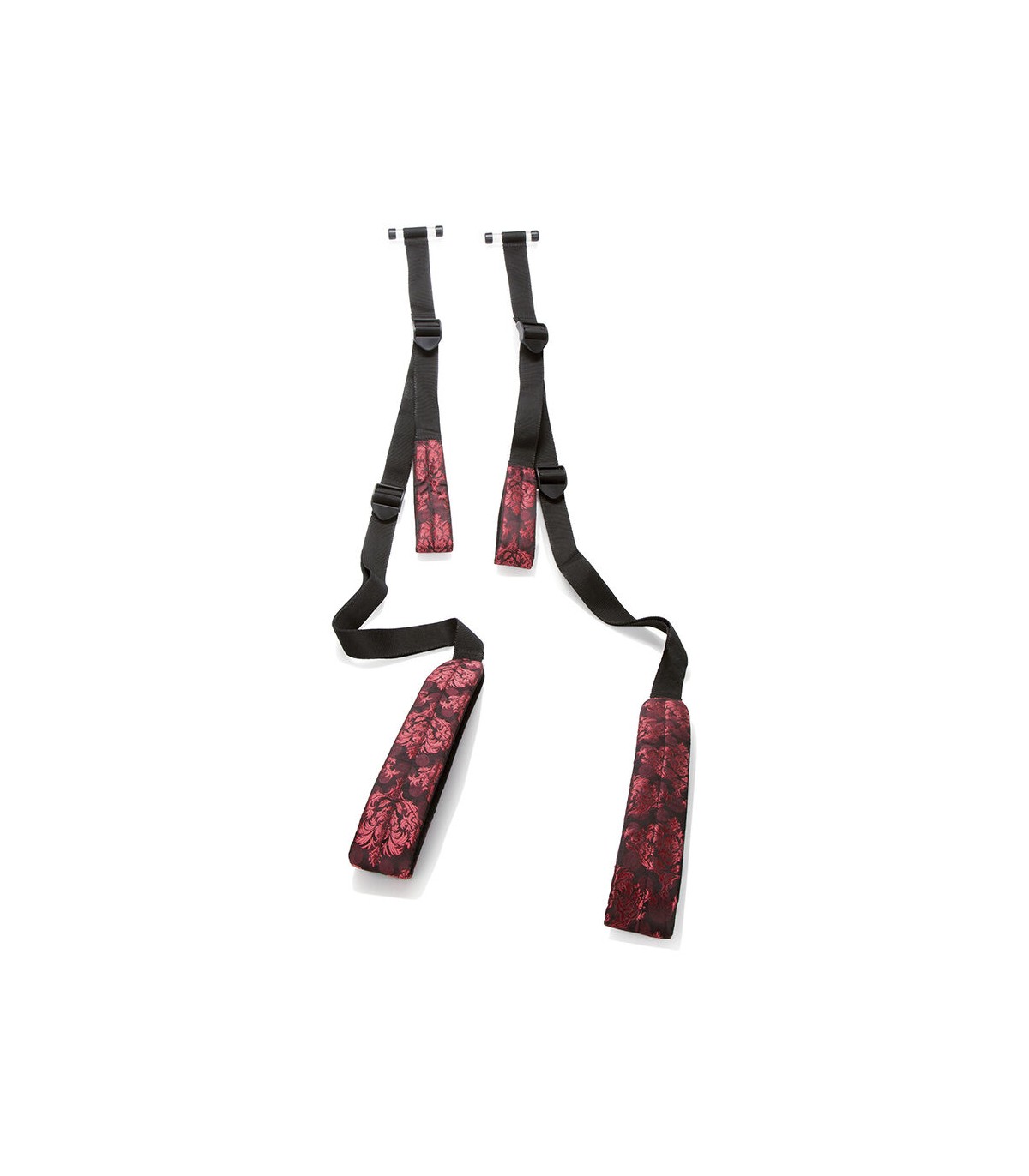 Alcanza nuevas cotas de pasión con el columpio Scandal para puertas. Este arnés universal se ajusta de forma segura a puertas estándar o extragrandes y cuenta con correas de brazos y muslos con doble acolchado, envueltas en una lujosa tela de diseño en rojo y negro. Deja que tu pareja tome el control mientras te balanceas en sus brazos, con el cuerpo elevado y en un ángulo perfecto para embestidas profundas y apasionadas. Las correas totalmente ajustables y los ganchos de barra seguros garantizan comodidad, sujeción y posiciones personalizables. Ya sea que quieras intensificar los preliminares o llevar la penetración a nuevas profundidades, el columpio Scandal® para puertas es la clave para un placer suspendido. Ajusta las correas para encontrar el ángulo de placer perfecto y disfruta de un éxtasis vibrante y sin peso con cada movimiento. Fácil de usar y fácil de liberar, es perfecto para parejas aventureras listas para explorar la magia del aire en cualquier momento y lugar.