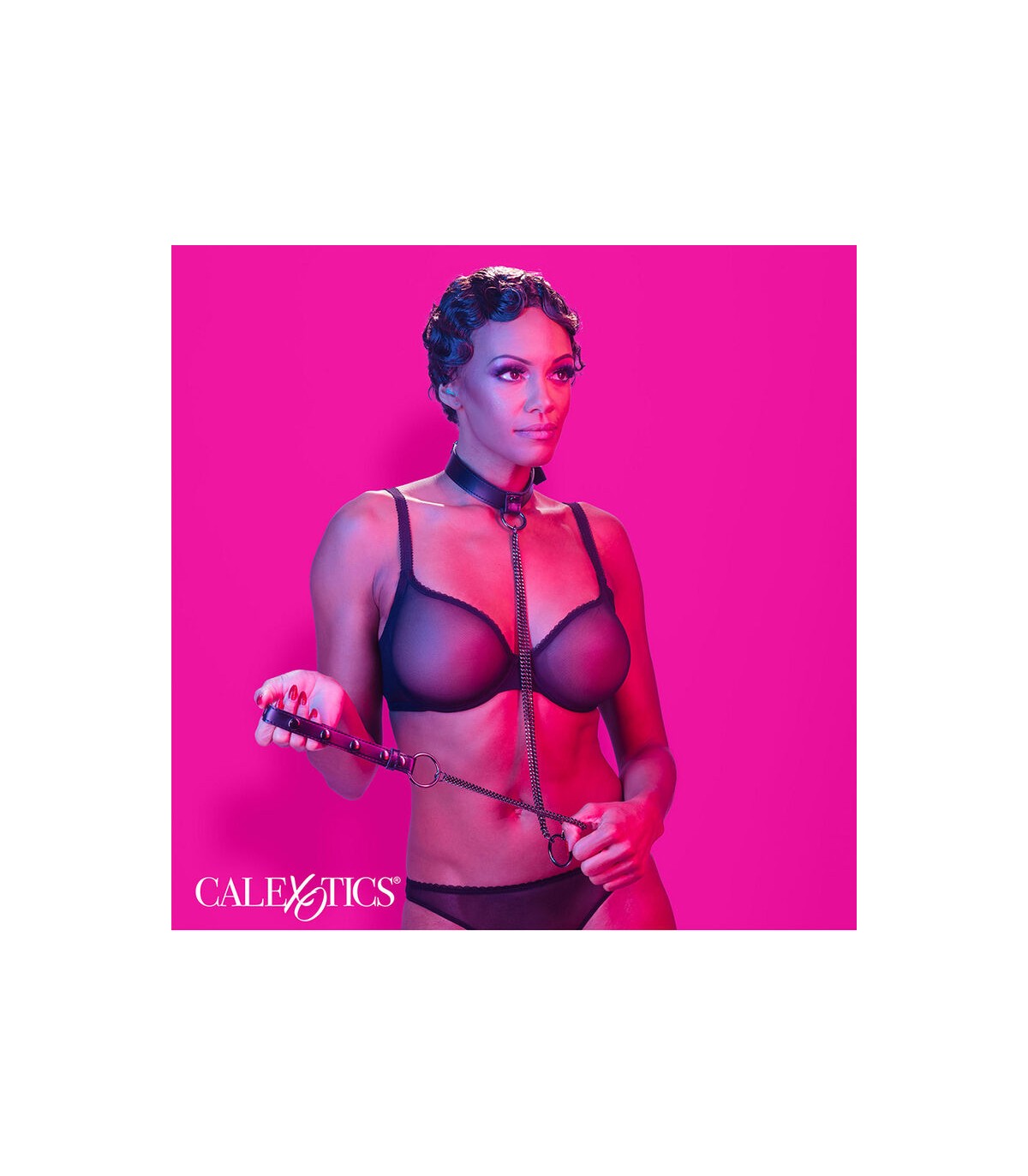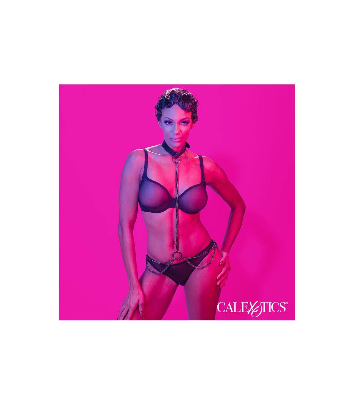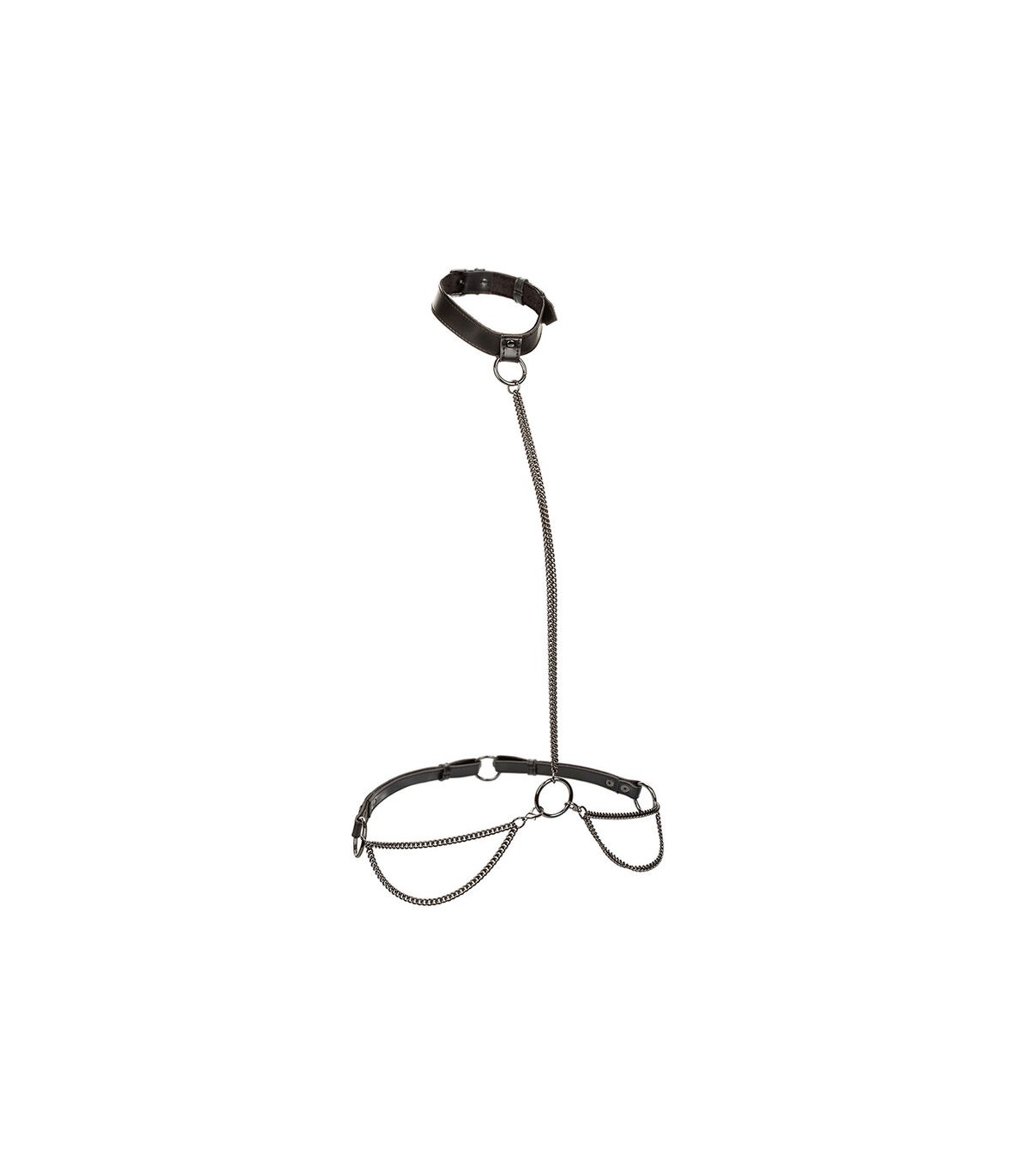 El arnés de múltiples cadenas se transforma sin problemas en un collar y correa imperativos, dirigido a los audaces, hermosos e intrépidos.