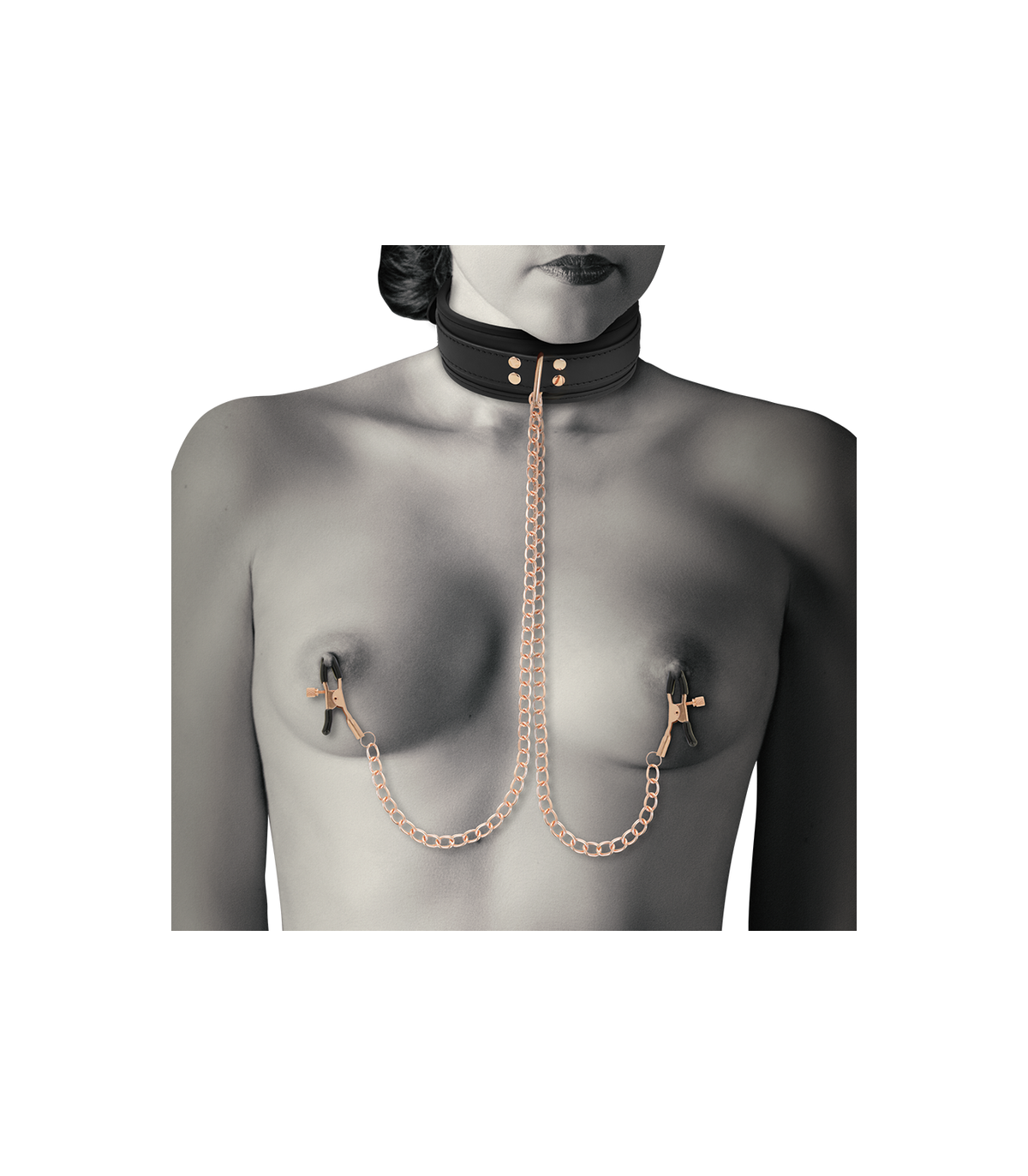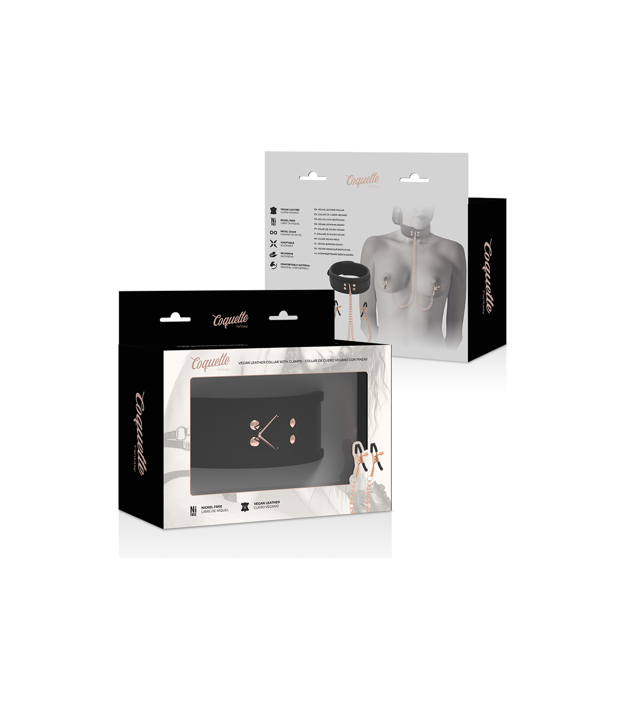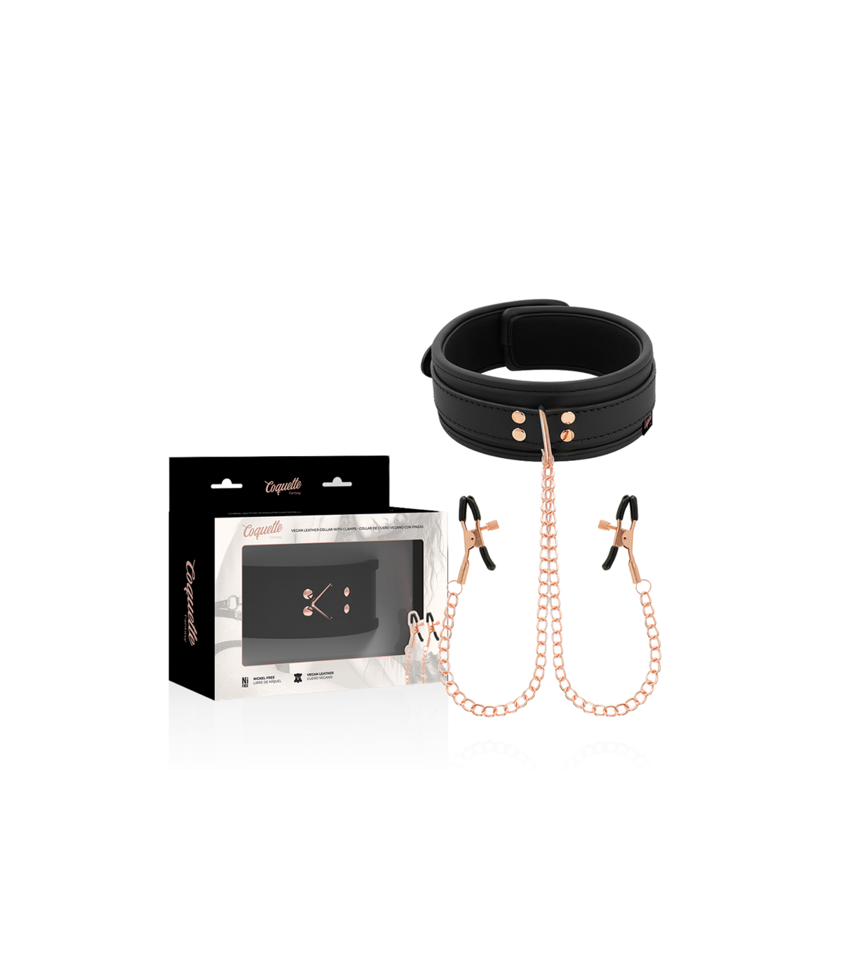 ppCOQUETTE CHIC DESIRE FANTASY collar de cuero vegano con pinza para pezones unido por cadena metal Incluida ppFabricado de suave cuero vegano y acabado con dos pinzas para pezones con cadenas este set de collar con pinzas te asegura a tu sujeto al momento pp El comodo collar se ajusta facilmente a casi todas las tallas mientras que las pinzas para pezones te ofrecen justo la tension adecuada en el lugar adecuado pp Simplemente ajusta el tornillo a los pezones hasta que quede ajustado y confortable y empieza a disfrutar de placer de un buen pellizco Sus recubrimientos de goma permitiran que con la accion del momento no se deslicen y permanezcan en su lugar ppEl collar de cuero cuenta con una resistente anilla para conectar una correa Correa incluida y asi tener a tu sujeto bien sujeto Las pinzas en los pezones estan conectados al collar con cadenas de metal ppEs perfecto para principiantes y lo suficientemente duradero para los entusiastas del fetiche con mas experiencia Este collar de esclavo con cuero vegano cadena metalica libre niquel y resistente es perfecto para jugadores avanzados ppUtiliza este juguete solo o con otros articulos de COQUETTE CHIC DESIRE FANTASY pulliFabricado en material Neopreno Metal libre de niquel y Cuero veganopLa coleccion COQUETTE CHIC DESIRE FANTASY es la perfecta para el BDSM calidad y resistencia aptas para cualquier juego ppstrongComo se puede practicar de manera saludablep La comunicacion es vital Por un lado todas las partes involucradas deben expresar verbal y claramente su consentimiento en realizar algunas de estas practicas Pero no es todo tambien debe haber una conversacion previa sobre los llamados limites blandos aquellos que estoy dispuesto a ceder y o negociar y los limites duros aquellos que no estoy dispuesto a transar ppUsar la llamada palabra de seguridad vale decir elegir una determinada palabra que signifique detenerse ya sea porque algo es incomodo doloroso o no placentero Se recomienda que sea un color o una palabra que no se diga generalmente durante el acto sexual como un color suave o una cosa por ejemplo amarillo o rosa para que el dominante o sumiso la escuche y se detenga Tambien se aconseja no utilizar palabras como No o Para ya que para la otra persona puede ser aun mas estimulante ppNo ocupar elementos que impliquen un riesgo para la otra persona es decir implementos que han sido creados especificamente para estas practicas y por ello es muy importante utilizar productos como COQUETTE CHIC DESIRE FANTASY Los juguetes sexuales tambien pueden incluirse de forma segura a estas practicas ya sea para el sexo penetrativo masturbacion o estimulacion externa ppJamas olvidarse del uso del condon ya que solo asi se estara previniendo la transmision de enfermedades de transmision sexual ppPor otro lado si es la primera vez que se incursiona en estas practicas lo primero que hay que hacer es informarse y asesorarse bien para saber de que se trata sus mitos y verdades Sugerimos partir por lo menos intenso e ir subiendo la intensidad solo asi los involucrados podran ir descubriendo sus limites lo que les gusta o no En este aspecto en COQUETTE CHIC DESIRE FANTASY disponemos de productos que pueden ser un gran apoyo para este camino Tambien hay juegos de mesa que ayudan a romper el hielo para ir probando y descubriendo nuevas sensaciones ppY por supuesto tal como mencionamos anteriormente de manera previa tener una conversacion clara y honesta con la pareja sobre los limites y por cierto sobre el consentimiento para realizar algunas o todas las practicas que forman parte del BDSM