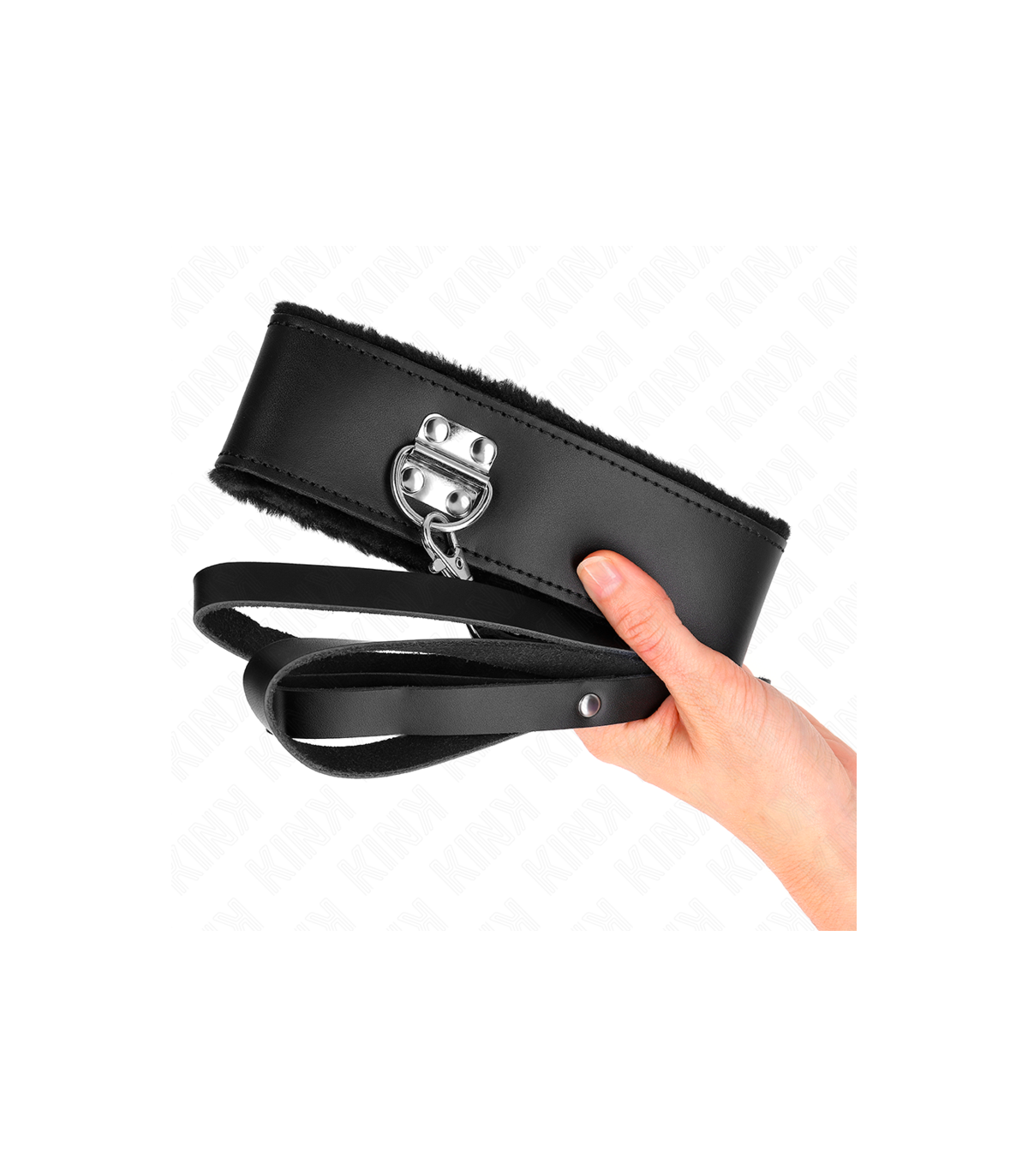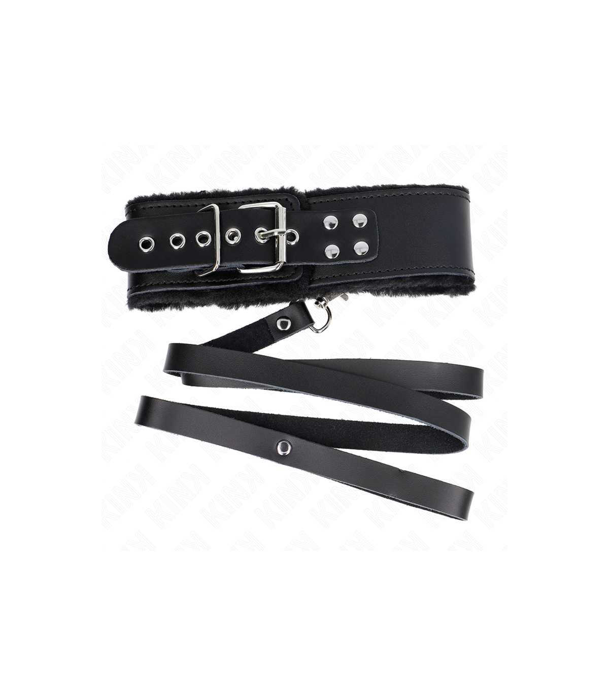 KINK - COLLAR CON CORREA 116 CM DE PIEL NEGRO AJUSTABLE 40-48 CM X 6 CM