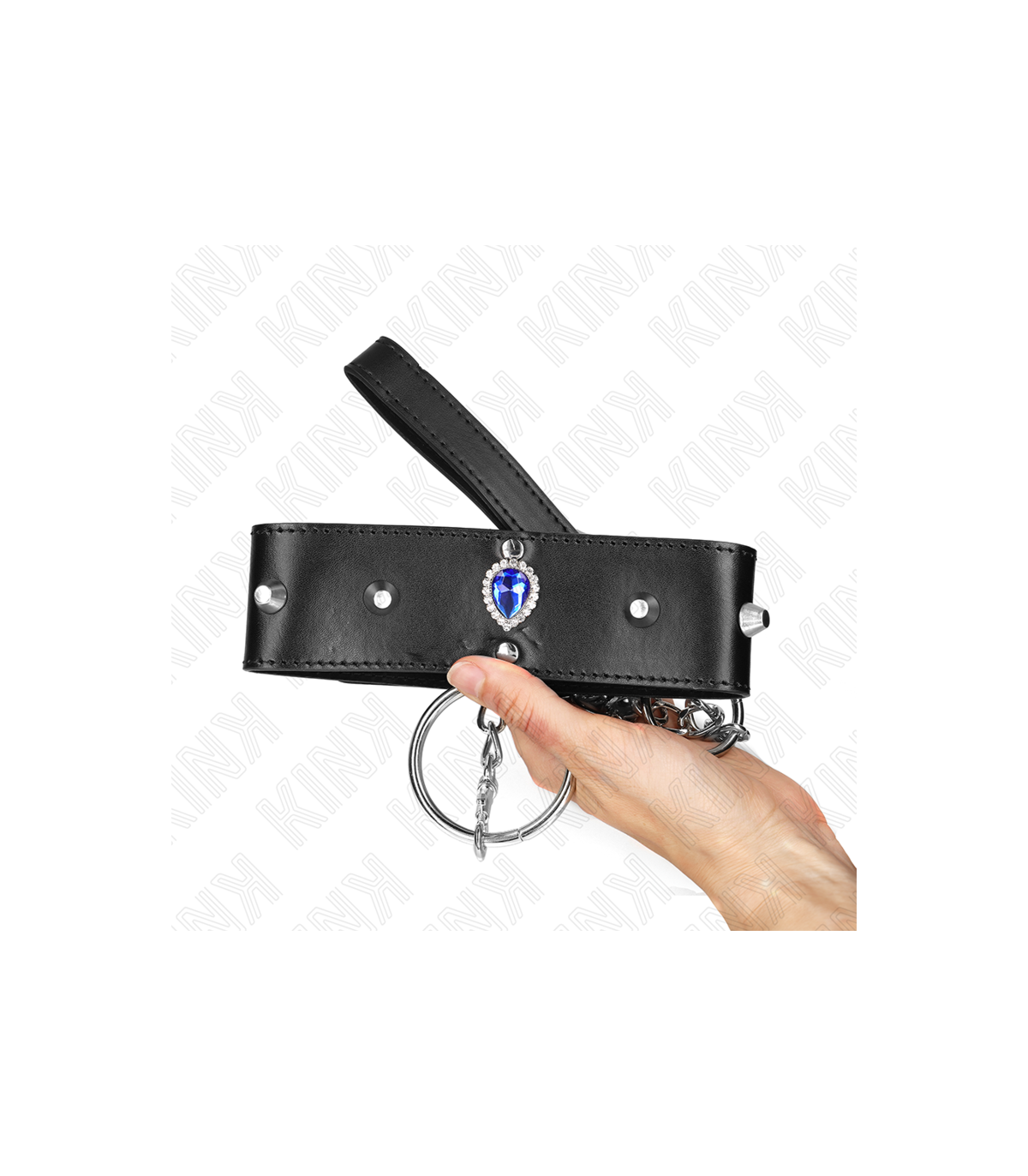 KINK - COLLAR CON CORREA 65 CM CON DIAMANTES AZULES AJUSTABLE 36-43 CM X 5 CM