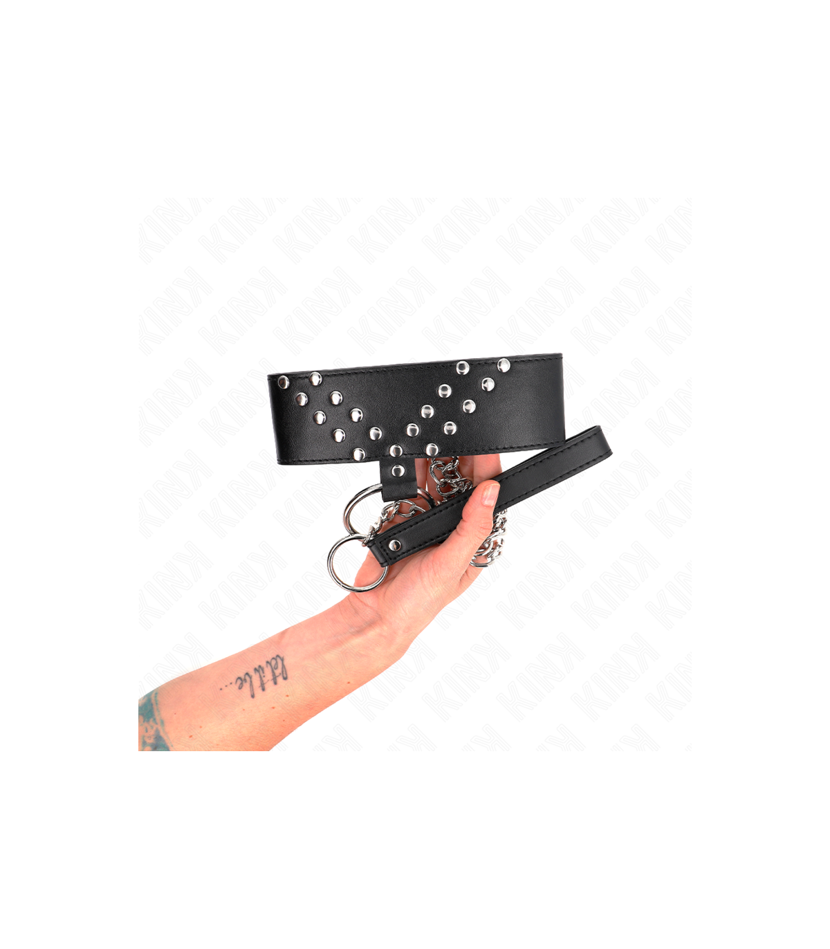• Materiales: Los collares con correa de KINK están fabricados con cuero, cuero vegano, silicona y metal de alta calidad. Las correas son robustas y cómodas, con asas ergonómicas que permiten un control seguro y efectivo. Los collares y correas están diseñados para ser resistentes, soportando incluso las sesiones más intensas.