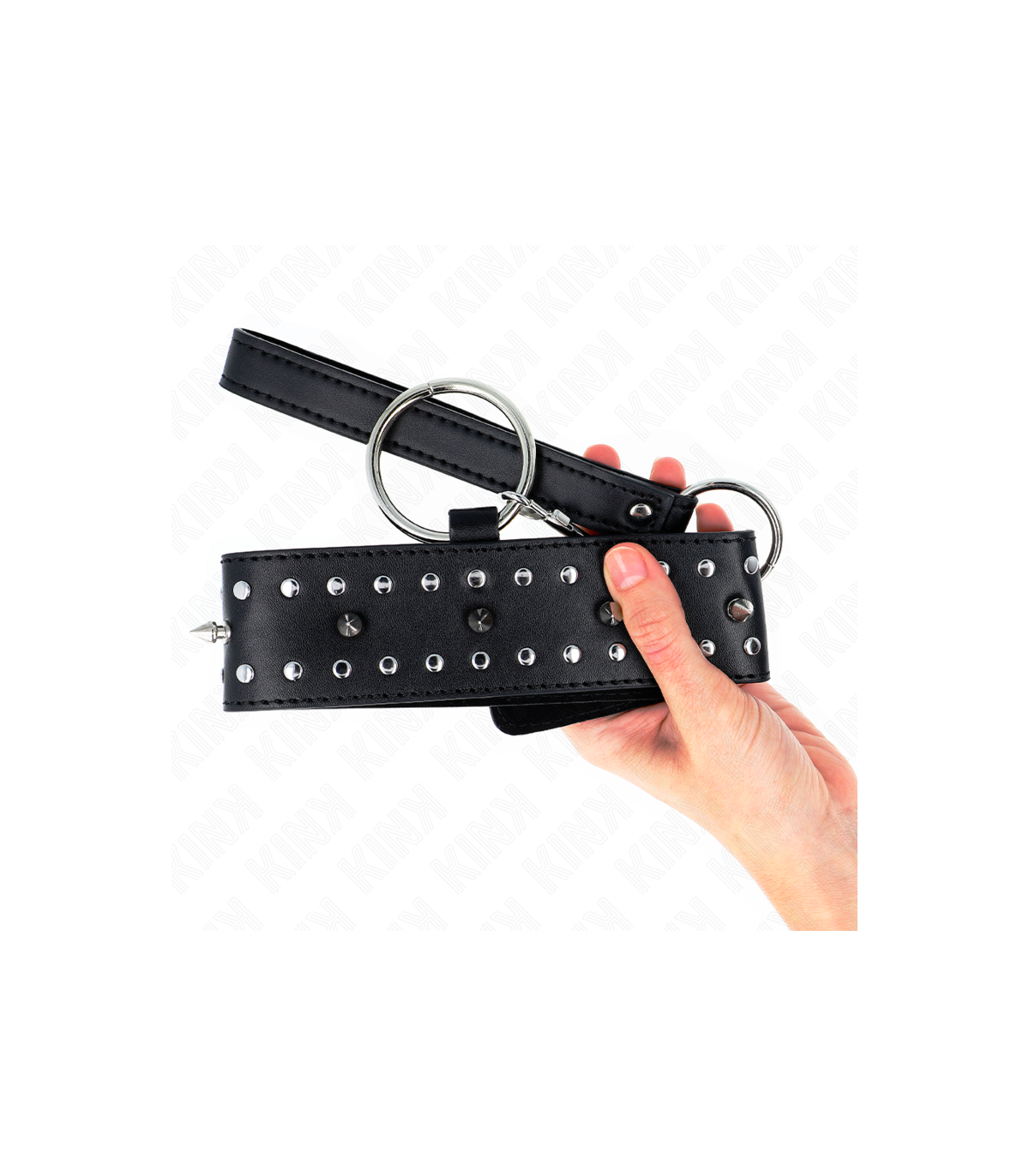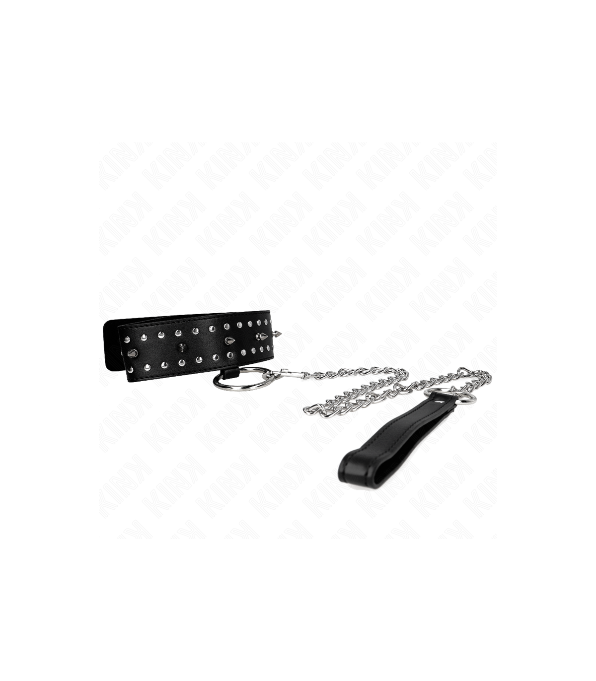 KINK - COLLAR CON CORREA 65 CM CON TACHUELAS PLATEADAS MODELO 1 AJUSTABLE 36-43 CM X 5 CM
