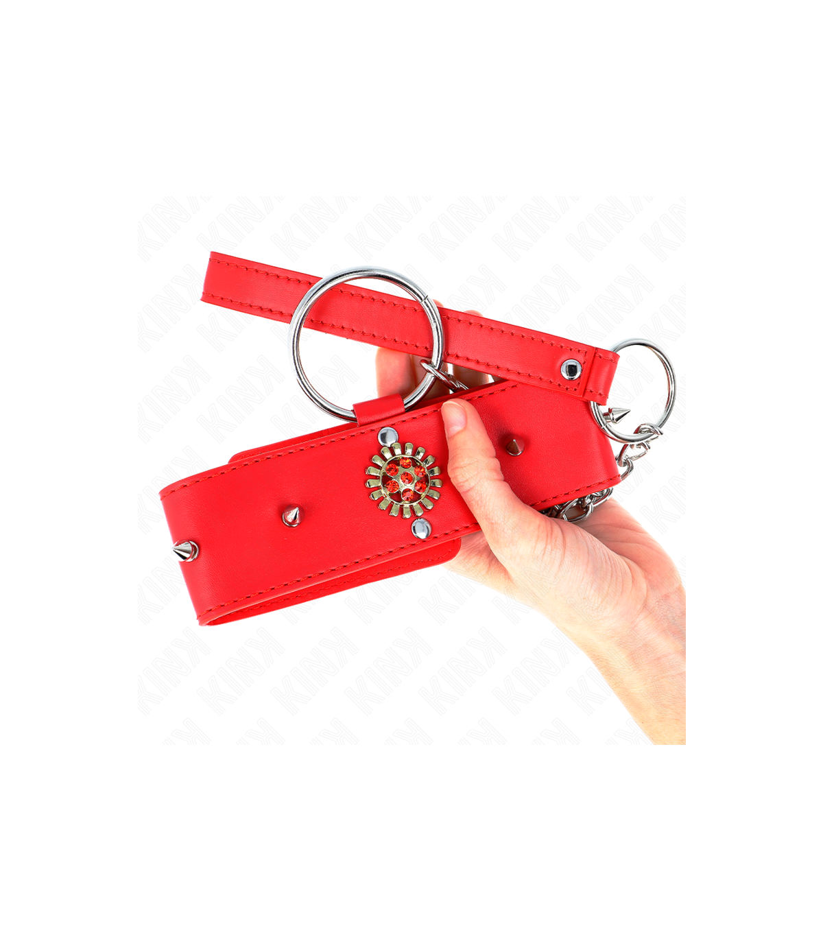 • Materiales: Los collares con correa de KINK están fabricados con cuero, cuero vegano, silicona y metal de alta calidad. Las correas son robustas y cómodas, con asas ergonómicas que permiten un control seguro y efectivo. Los collares y correas están diseñados para ser resistentes, soportando incluso las sesiones más intensas.