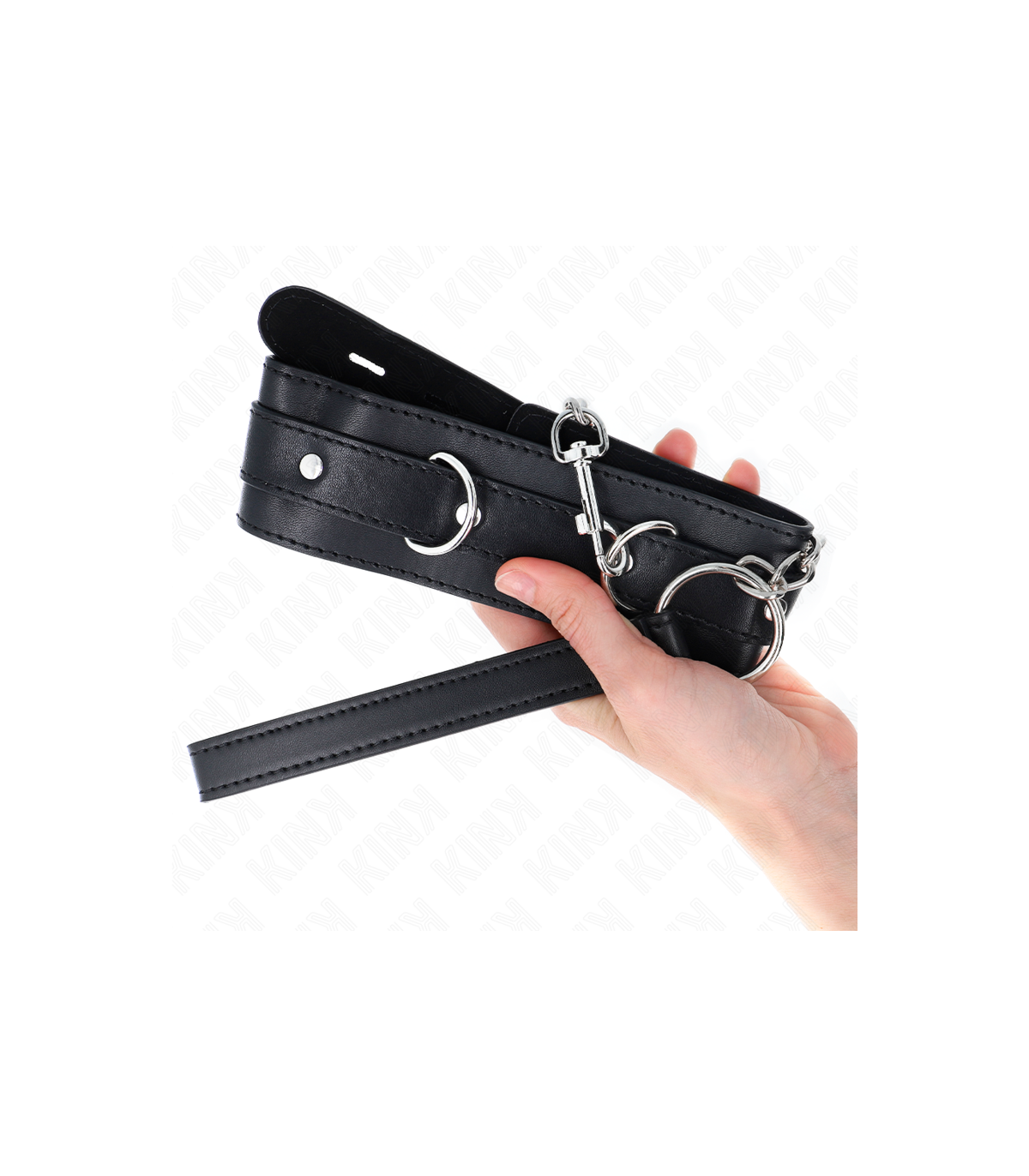 • Materiales: Los collares con correa de KINK están fabricados con cuero, cuero vegano, silicona y metal de alta calidad. Las correas son robustas y cómodas, con asas ergonómicas que permiten un control seguro y efectivo. Los collares y correas están diseñados para ser resistentes, soportando incluso las sesiones más intensas.