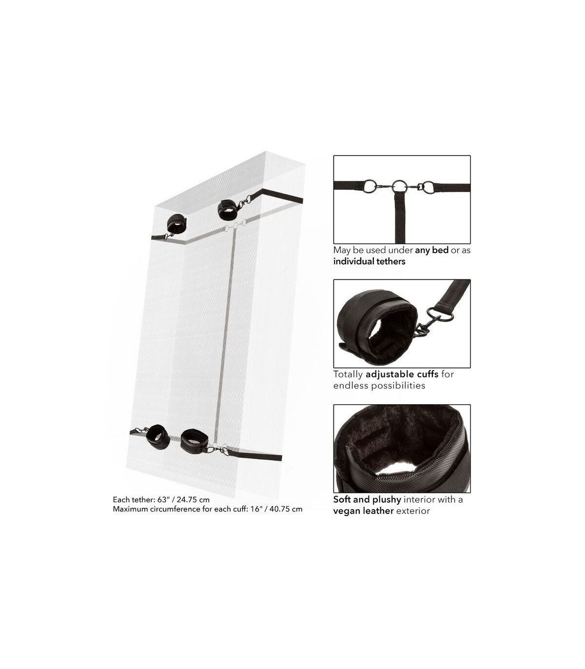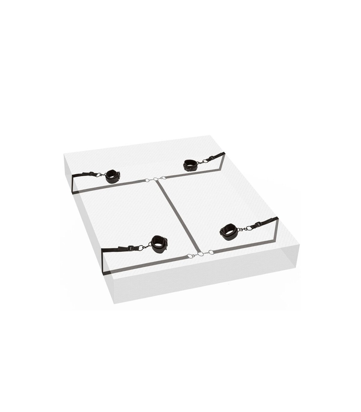 Las correas de seguridad ajustables y muy resistentes se envuelven debajo de casi cualquier tamaño de colchón de cama, lo que garantiza que el submarino esté sujeto a la voluntad del dom.