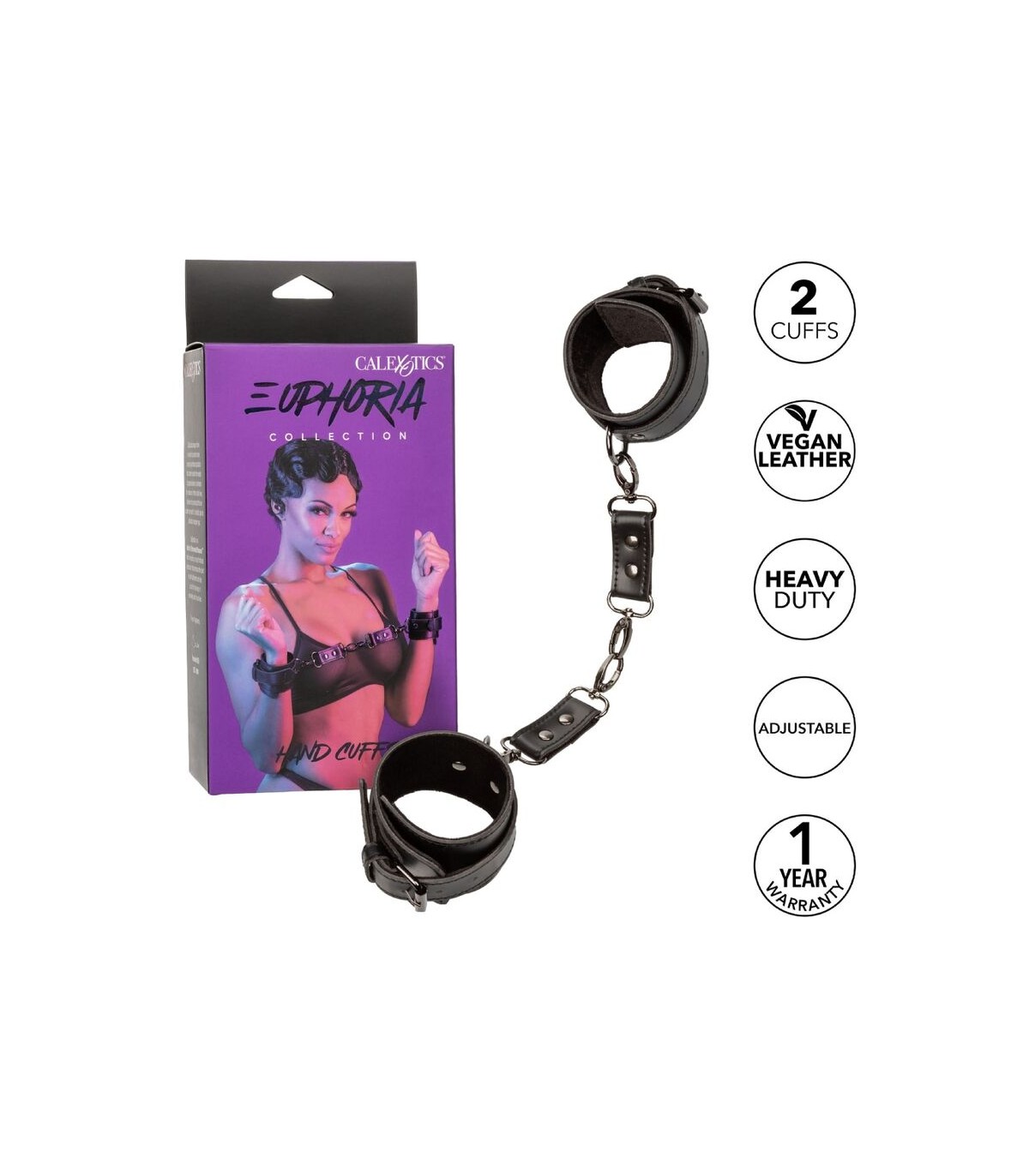 Descubre el atractivo del juego de restricción con las esposas de mano de la colección Euphoria. Este set ofrece dos restricciones de muñeca diseñadas para estilo y funcionalidad. Disfruta de un ajuste personalizado con hebillas ajustables y lujosos interiores de terciopelo emparejados con exteriores de cuero vegano elegante. Los broches universales y los anillos en D giratorios proporcionan flexibilidad para diversas posiciones. Fabricadas para durabilidad, estas esposas cuentan con doble acolchado y costura. Los detalles metálicos que no se empañan añaden sofisticación, elevando momentos íntimos. Acepta la confianza, la rendición y la emoción con las esposas de mano de la colección Euphoria, donde cada uso crea sensaciones inolvidables y exploración erótica.